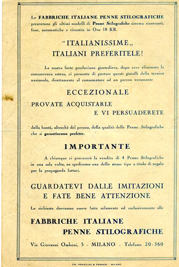 Alla fine meno di quel che si pensi, la stessa ditta produceva anche le stilografiche Hoower, e lo stesso giorno del deposito del marchio Italianissima, depositò pure questo che di italiano ha ben poco...