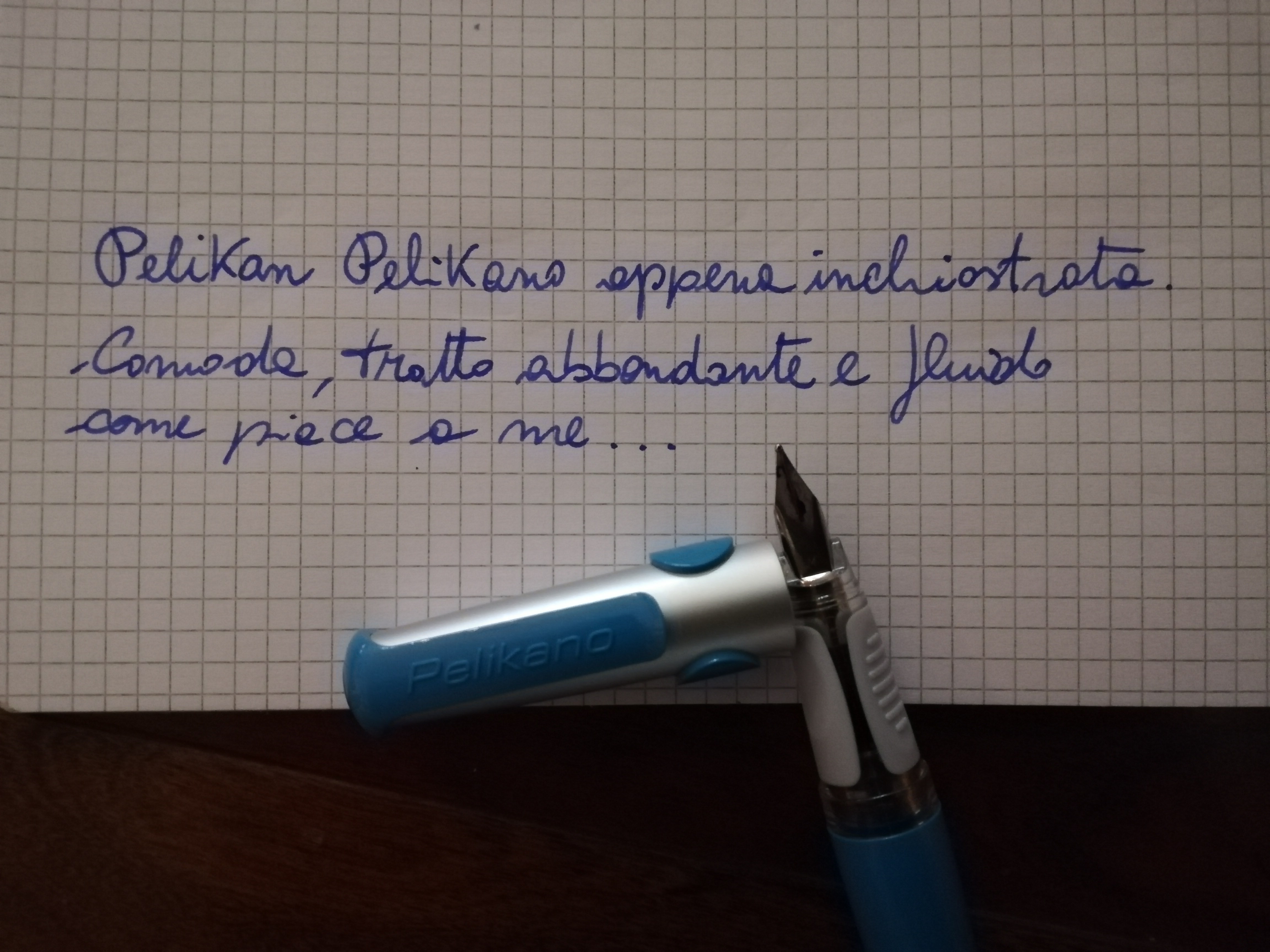Questa invece è la mia pelikan Pelikano....arrivata sabato e inchiostrata oggi. Ho letto tante critiche su di lei rispetto alle versioni vintage, ma devo dire che mi ha piacevolmente sorpreso...