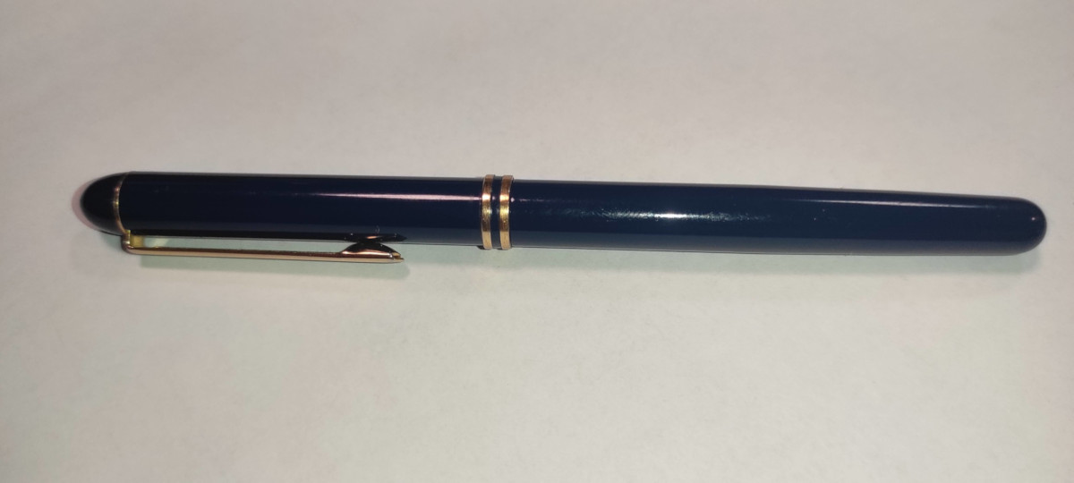 Il corpo della penna è in metallo laccato blu (molto probabilmente in ottone) con un peso 23 g. con la cartuccia piena e il tappo, mentre il solo corpo pesa 9.5 g.