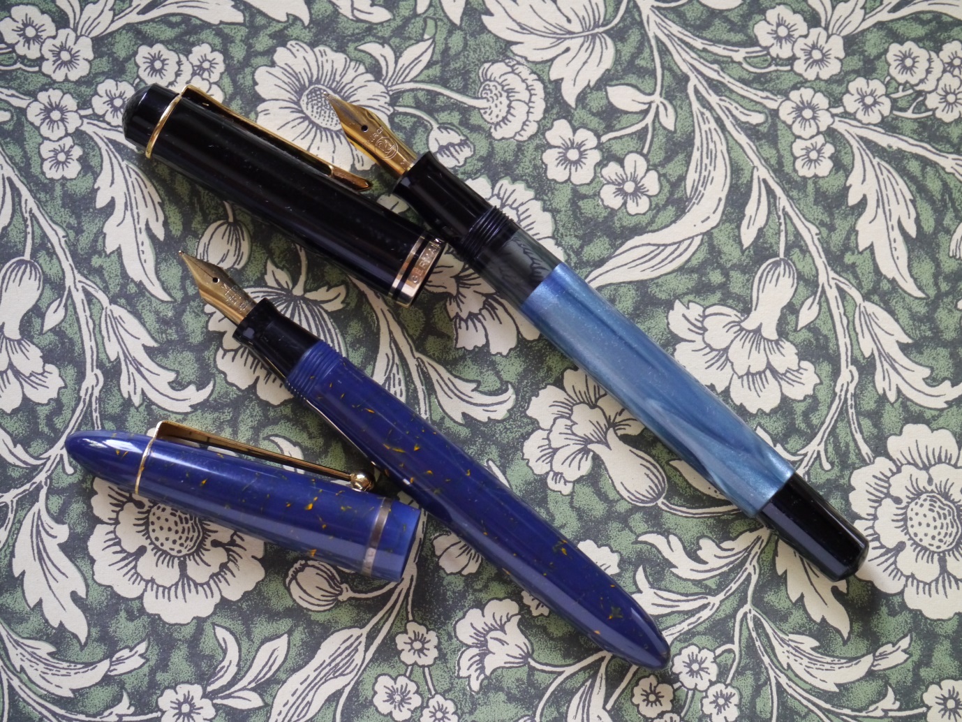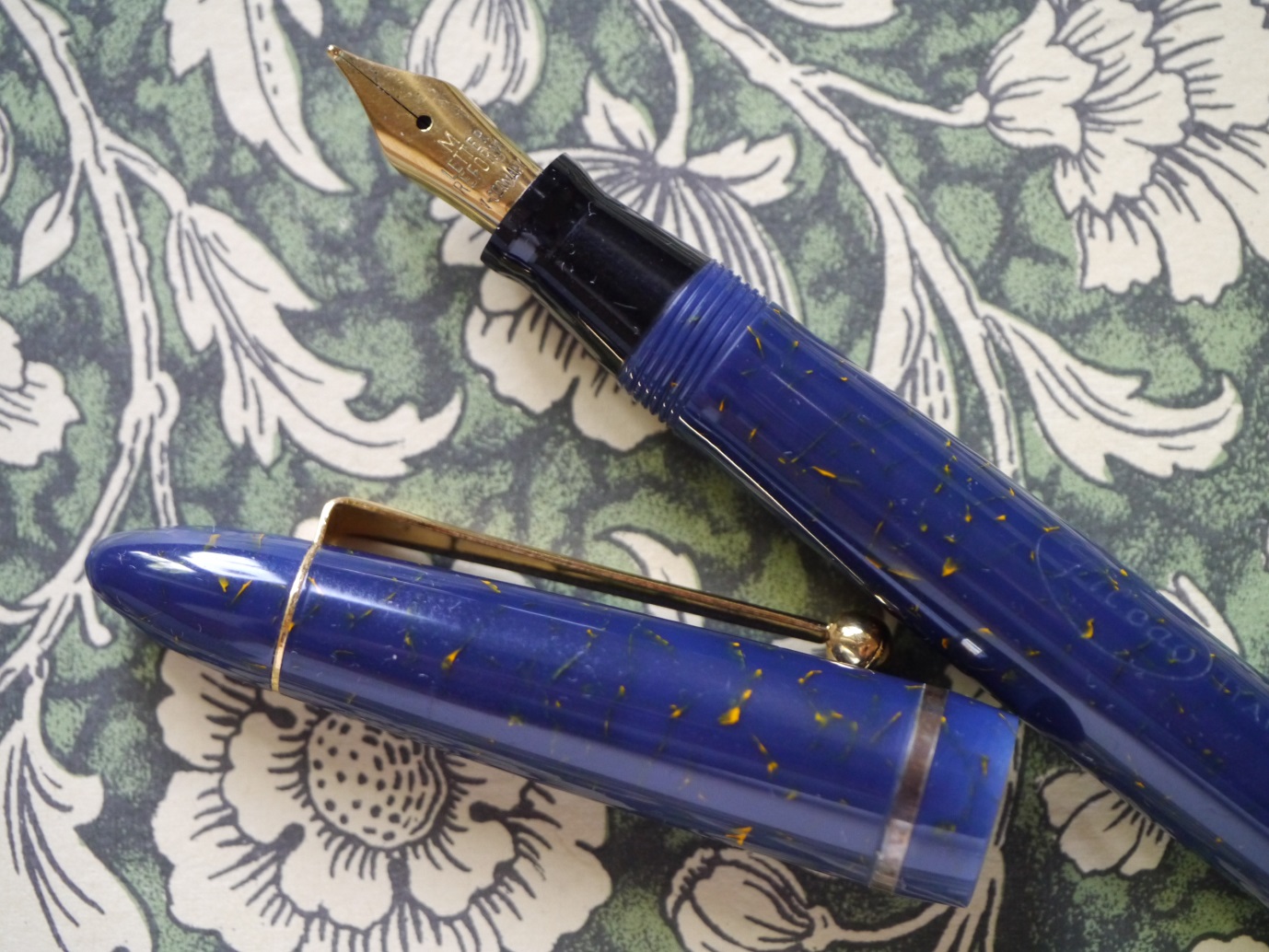 questa invece è una piccola penna in blu lapislazuli, che dopo un po' di ricerche mi sembra di aver identificato come modello Kamaleon, in acetato di cellulosa.