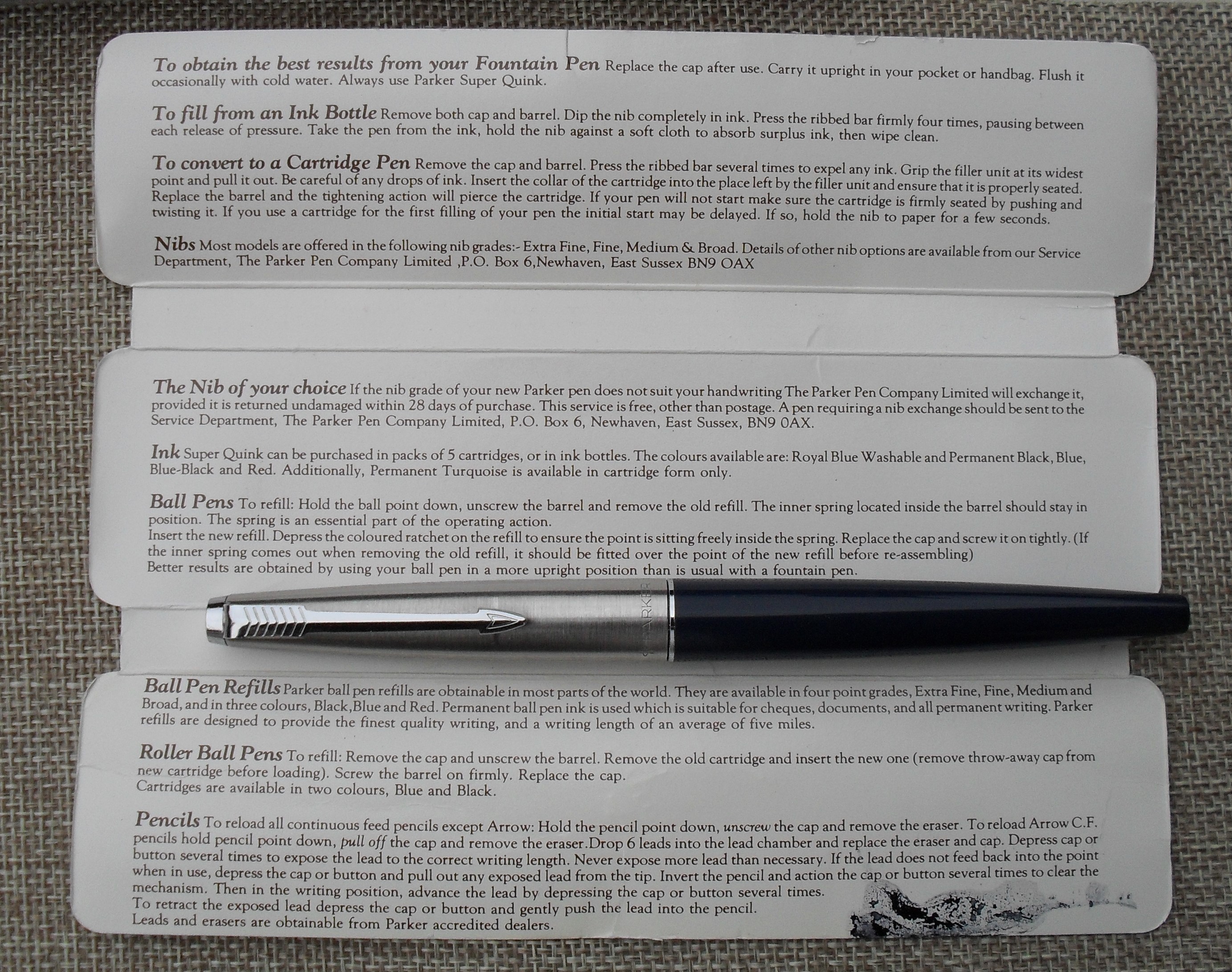 Parker 45 Special CT leaflet rear - the pen is a Classic.jpg