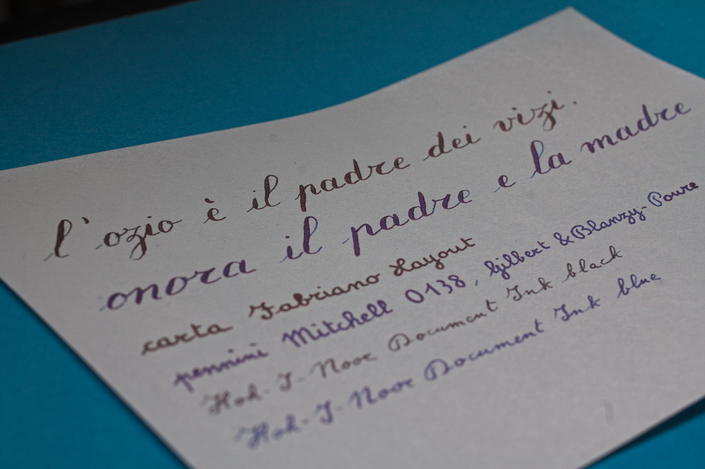 e su carta fabriano layout su cui si vede lo sheen (soprattutto del blu) e devo ammettere che il nero rimane molto più nero