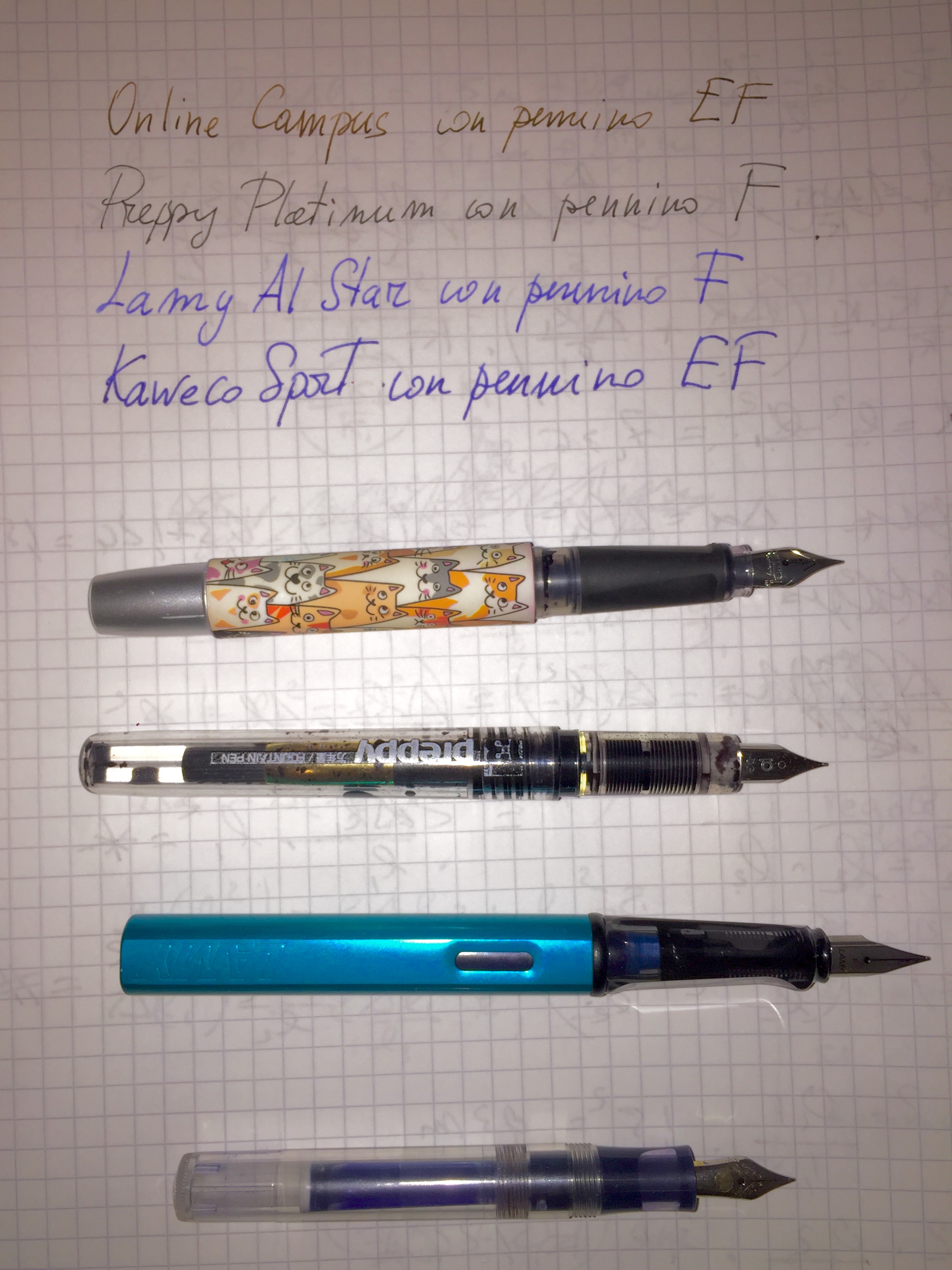 In buona sostanza ti consiglio la Campus. Mia moglie mi regalò questa (mi piacciono poco le stilo poco seriose) a cui ho messo il pennino EF comperato successivamente da me: https://www.amazon.it/Online-schreibger ... B07D1QGJL7