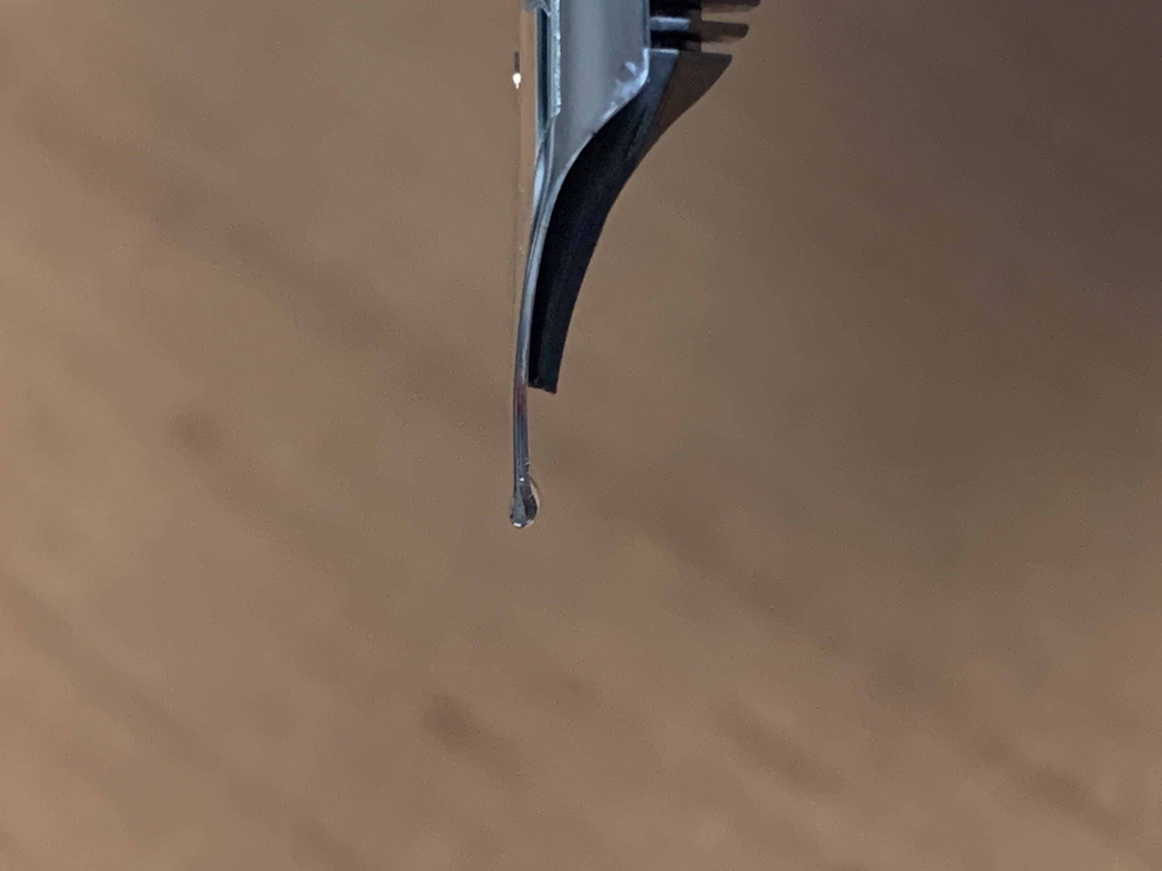 Ha funzionato! Ho lavato 4 volte e tutte usando prima detersivo e poi acqua calda. Alla fine la falsa partenza si era ridotta tantissimo: 2-3 mm circa dopo un riposo di 1 minuto. A quel punto ho rilavato tutto di nuovo e sostituito con inchiostro Aurora: ora va alla grande!!! Evidentemente il grado di acquosità dell’inchiostro Aurora è superiore al Leonardo Officina italiana!