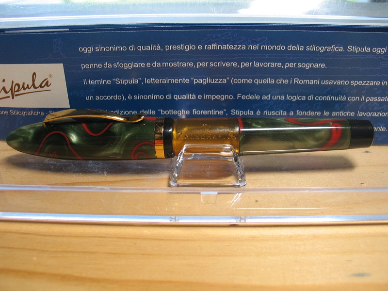 Salve, oggi per non tornare a mani vuote dal mercatino ho preso questa Stipula non tanto per la penna ma per l'insieme, è la prima volta che trovo anche la "scatola". Non sono un collezionista di scatole ma per i pochi euro richiesti valeva la pena.