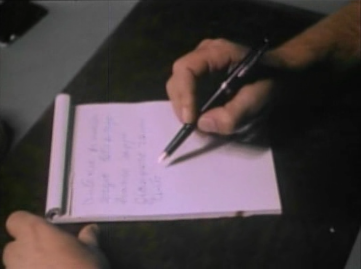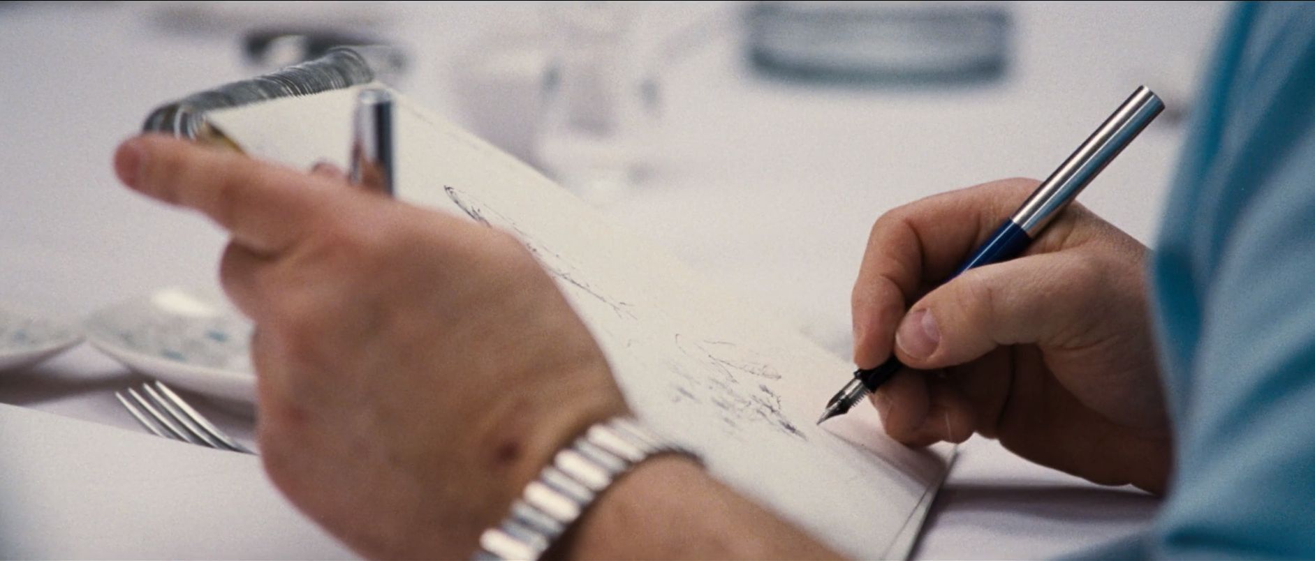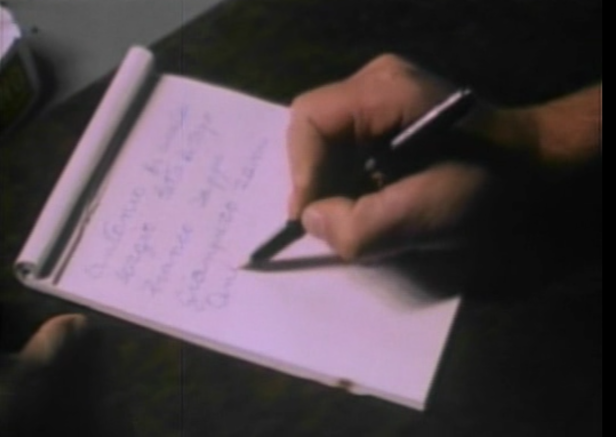 Uno dei personaggi minori scrive una lista usando una stilografica, purtroppo il file a mia disposizione è vecchio ed il rip è di qualità scadente e rende difficile l'identificazione...