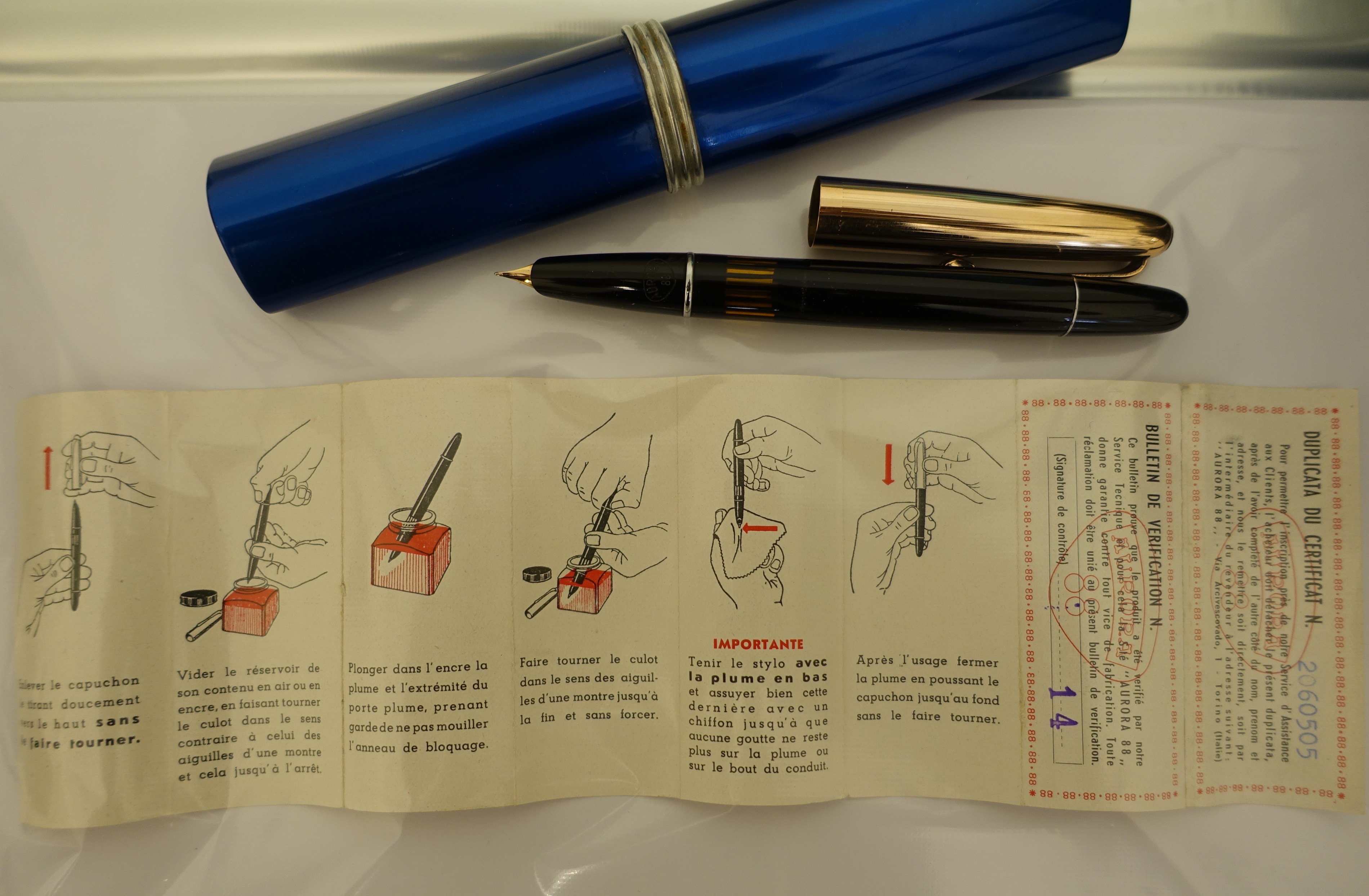 Il numero di matricola conferma il fatto che la produzione della 88 e 88K si sono sovrapposte, ho un paio di 88K con i numeri 1962695 e 2046549 chiaramente più bassi della 88 Nizzoli, inoltre come si può vedere in fotografia condivide con la k lo stesso cappuccio a fascia inferiore più alta, cambia ovviamente la clip. Mi sfugge il significato della punta quadrata. :)