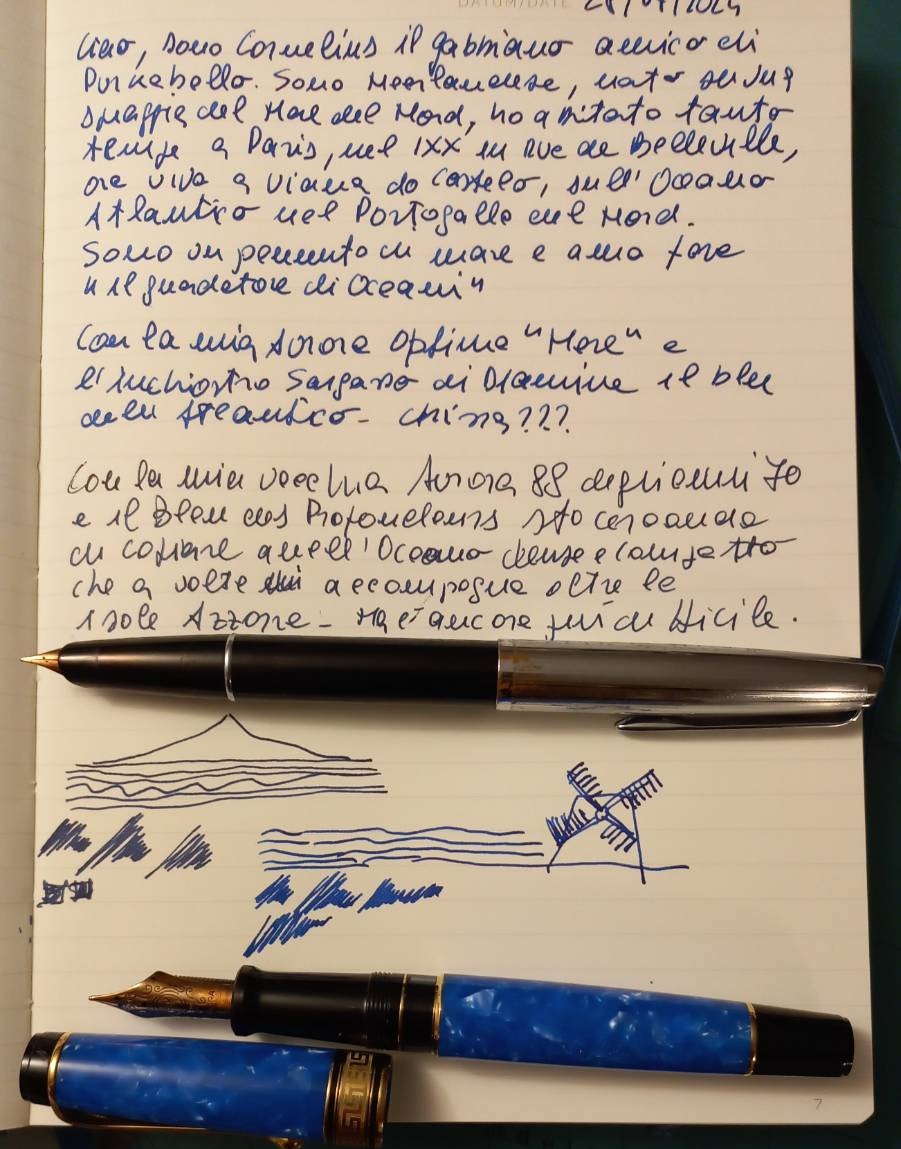 Con la mia Aurora Optima “Mare” e l'inchiostrio Sargasso di Diamine cerco di ripetere il blu dell'Oceano Atlantico. Chissà?