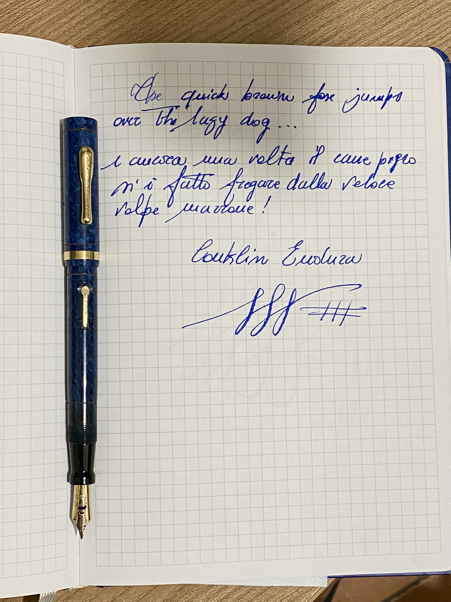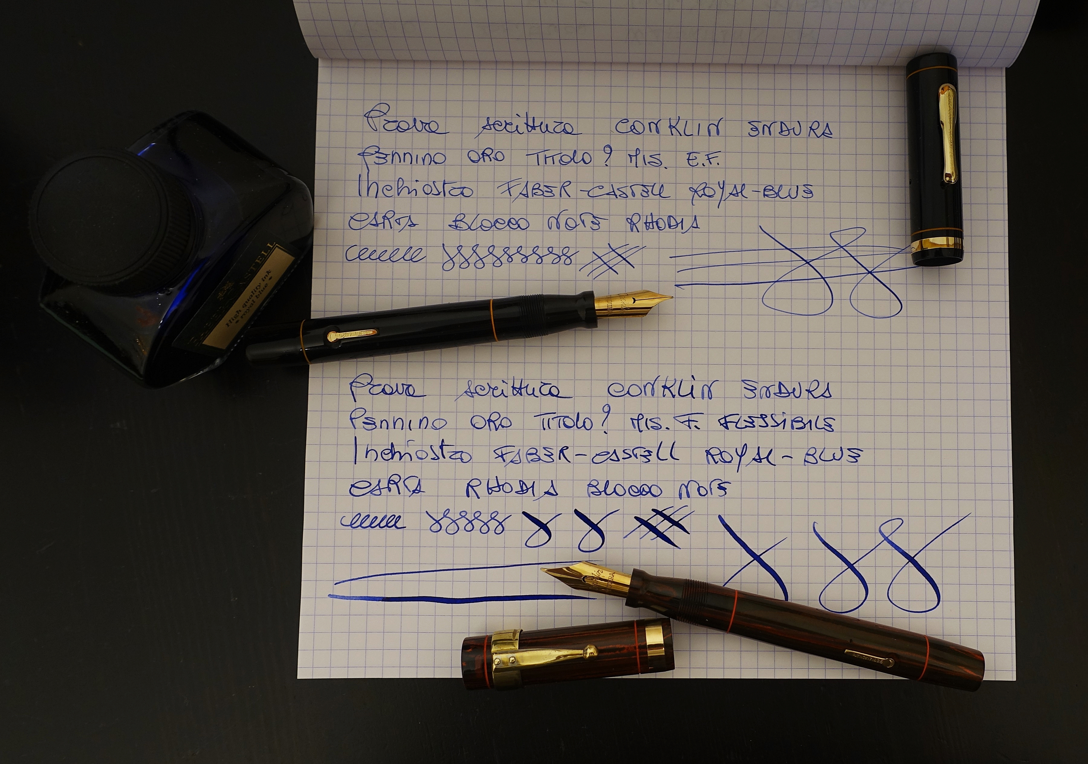 Dopo un paio di anni che ho queste Conklin Endura mi sono deciso a provarle, scrivono magnificamente e mi domando ancora quale fosse il segreto per costruire dei pennini così fantastici, siamo negli anni 1920/30. Ovviamente è parere del tutto personale.