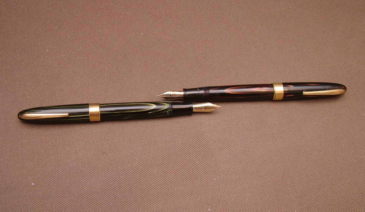 Ciao Giorgio, appena posso pubblico delle foto della coppia, l'altra è sempre con celluloide ad arco sul rossiccio scuro e se ricordo bene col pennino Rover.
