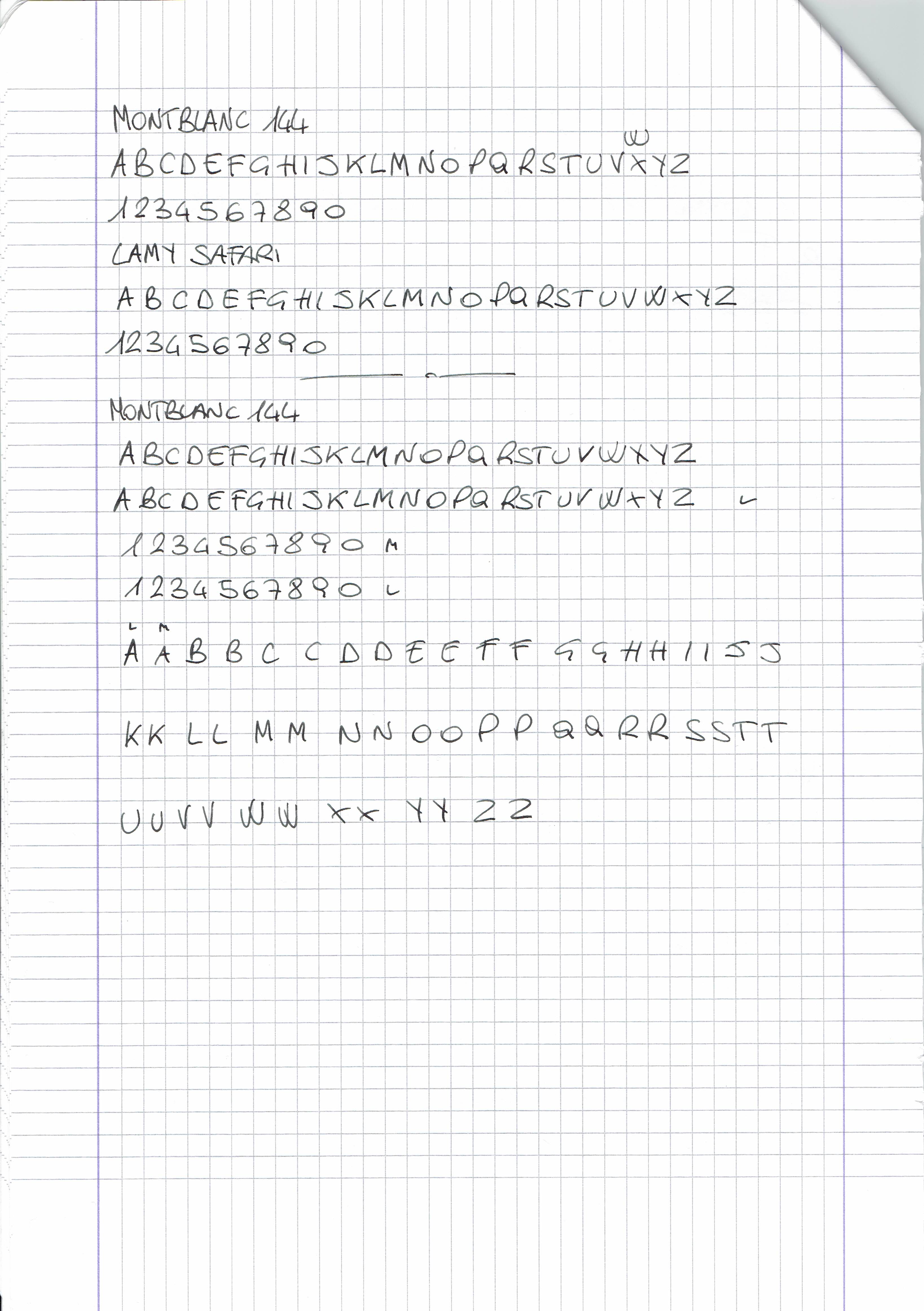 Dopo aver caricato la Lamy Safari EF con l'inchiostro Aurora Black sonno addivenuto ad una risposta, il pennino della Montblanc 144 è anch'esso EF. Ho effettuato varie prove di scrittura confrontando di volta in volta i due tratti e mi sembrano perfettamente uguali. Ovviamente, se qualcuno vorrà smentirmi, ne sarò ben lieto