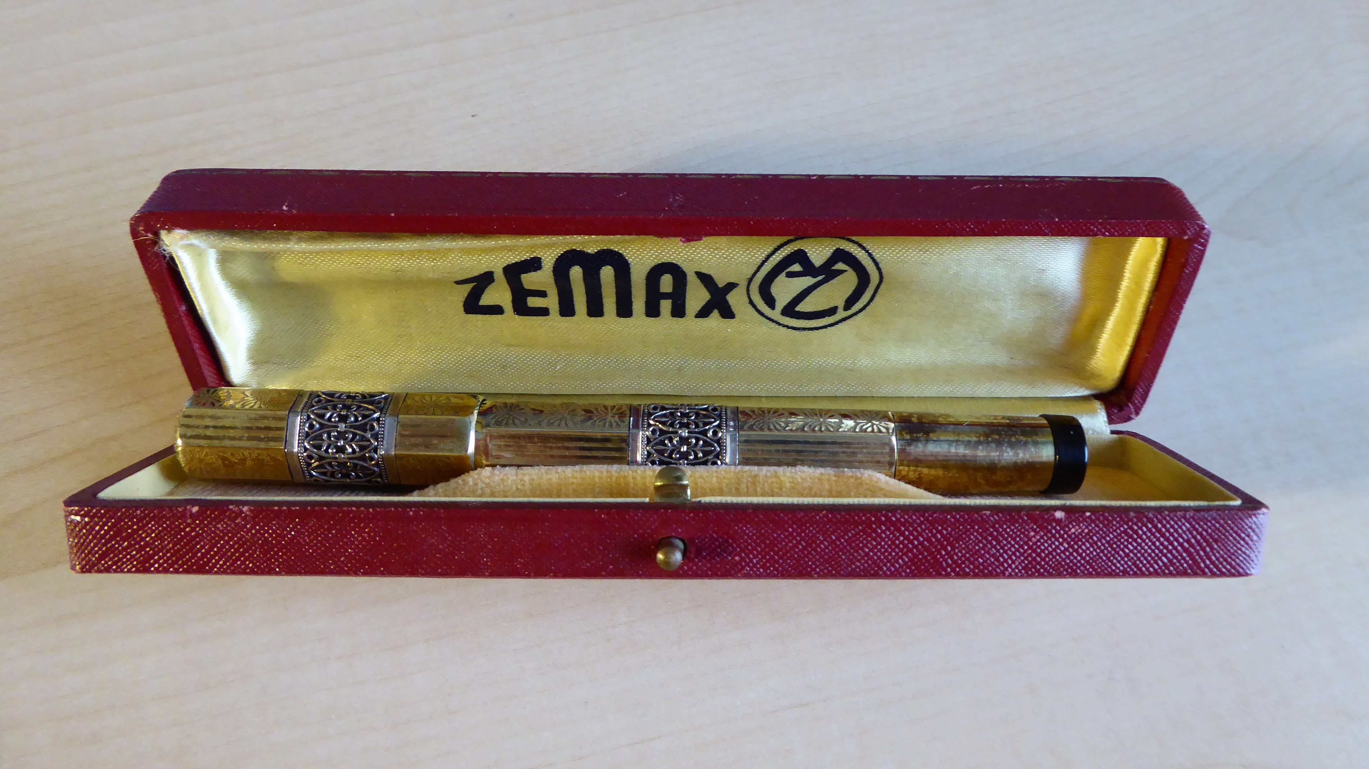 Senz'altro era una delle Marche di Massimiliano Zeme, non credo che l'astuccio sia il suo il pennino è un pennino di quelli standard che spesso sostituivano gli originali, in alcuni casi anche alcuni produttori li usavano ,probabilmente perchè farli marcare col proprio nome costava troppo.
