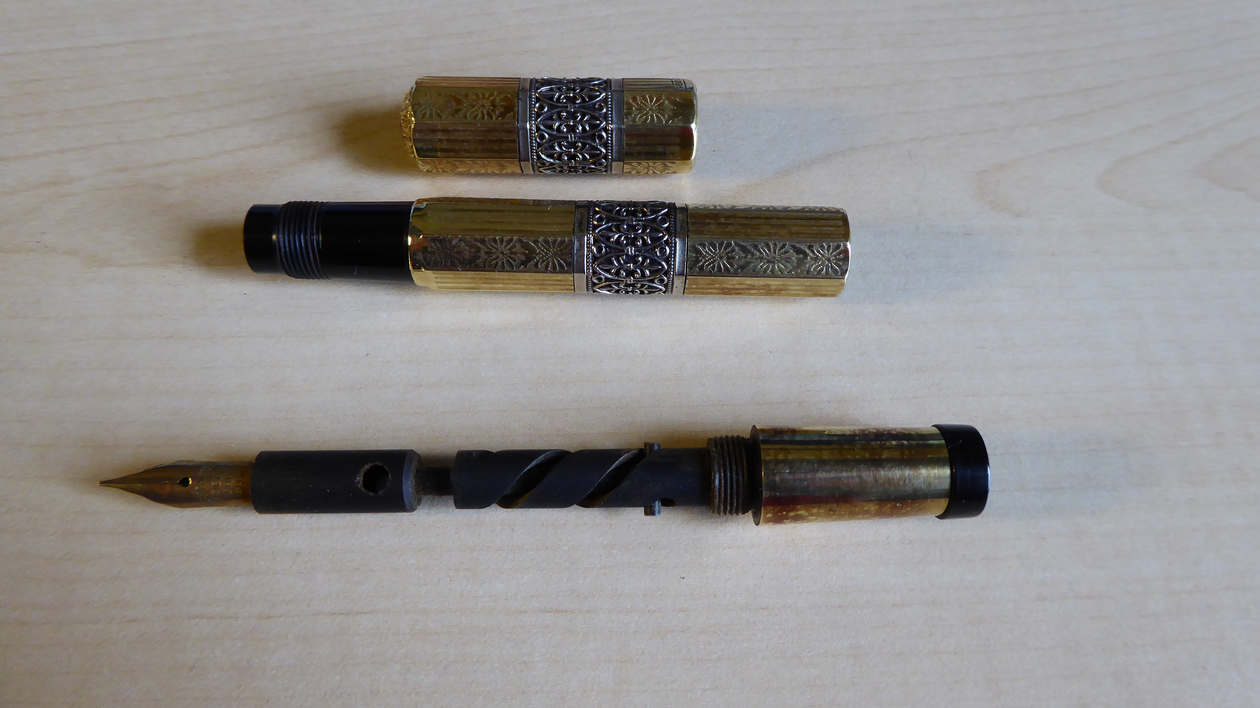 Dopo una sosta forzata causa operazione ai piedi di mio figlio, sono ritornato ad avere un po' di tempo libero e mi piacerebbe restaurare la penna in oggetto. Si tratta del regalo per la prima comunione di mio padre quindi è databile 1940 circa. Sulla custodia c'è scritto ZEMAX ma sulla penna c'è scritto REXING PEN mentre sul pennino c'è scritto WARRANTED IDEAL ORO 585, mio padre dice che il pennino è quello originale così come la custodia, sul Wiki ho trovato un collegamento tra ZEMAX e REXING ma è strano (almeno per me) che sulla penna non ci sia nessun riferimento alla ZEMAX e che il pennino sia WARRANTED IDEAL. Voi cosa ne pensate?