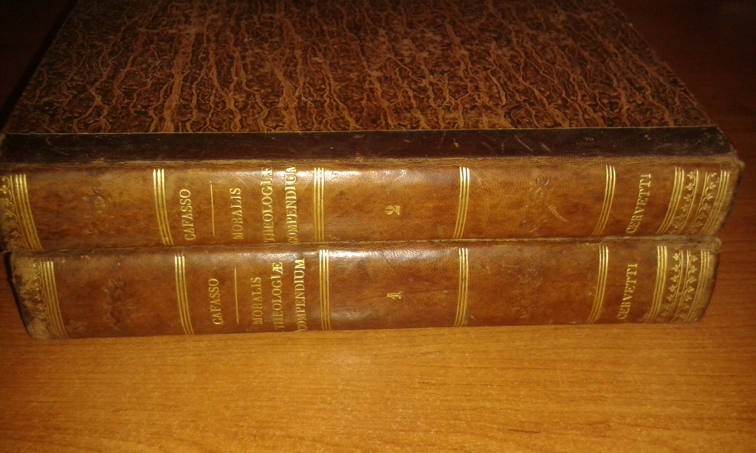 Direi che si tratta dei due tomi del Moralis Theologiae Compendium scritti da San Giuseppe Cafasso. Sono quindi databili alla metà dell'Ottocento