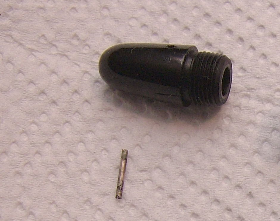 Per estrarre il pistoncino bisogna levare il puntale, perchè il pistoncino va spinto dal basso verso l'alto, si, fuoriesce solo dalla parte posteriore perchè ci sono le alette guida che non possono passare dalla parte anteriore (lato puntale).