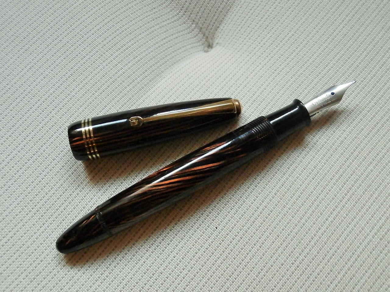 fab66 ha scritto:Ciao, così alla buona oserei direi anni fine anni 40, sul valore mi arrendo subito....... non ci sono riferimenti, il marchio è collocabile insieme ad altre decine di produzioni della zona Settimese, se proprio devo dire una cifra penso sui 40/50, magari con pennino in oro anche di più... se qualcuno mi smentisce non mi offendo...
