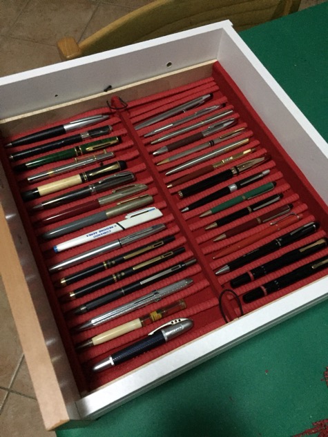 io,siccome sono un malato del fai da te,mi sono creato dei vassoi a misura rivestiti di velluto adesivo e li ho inseriti in un cassetto dedicato a loro....così ho un bel po di spezio....per ora.Per separatore ho usato quei tappetivi antiscivolo gommosi a metro il tutto spendendo pochi euro.Poi ho anche un porta penne in legno che mi hanno regalato dove ci tengo le penne migliori