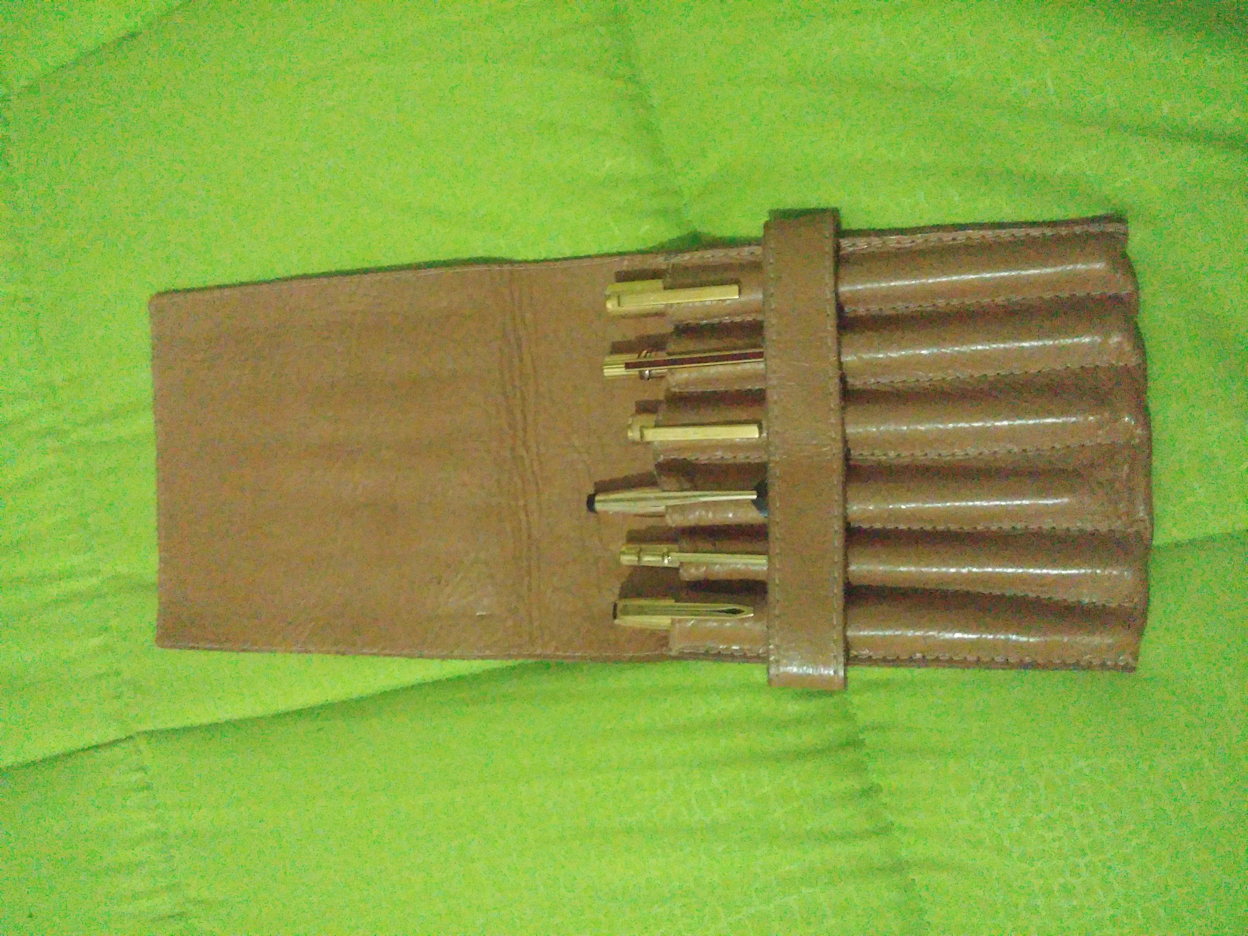 io ho usato un normale astuccio scolastico e ho rimosso le cuciture una si una no in modo da poter inserire le penne che sono più grosse dei pastelli. So che è una porcheria ma è comodo ed economico. Certo che con delle penne più importanti questa soluzione è abominevole