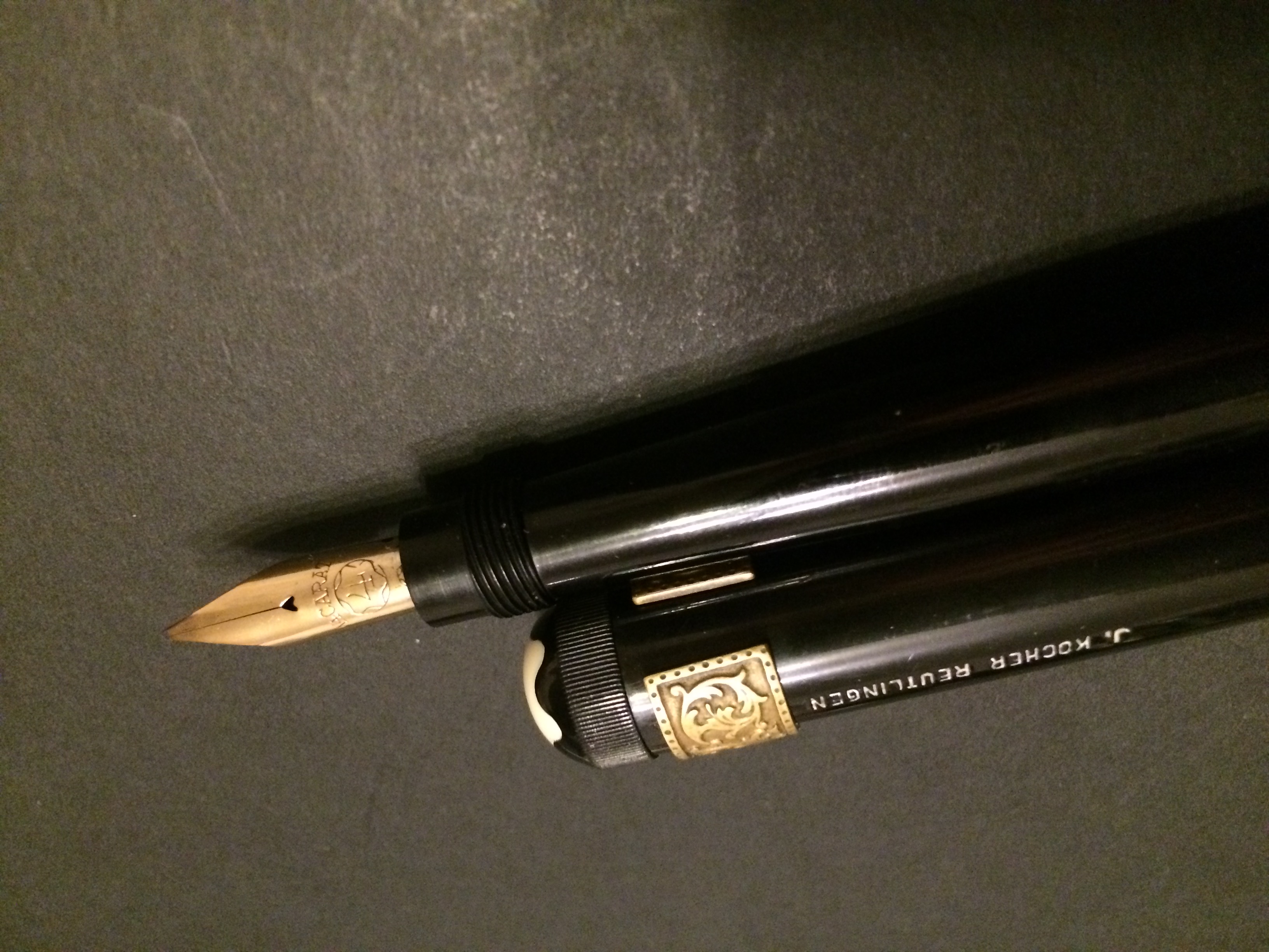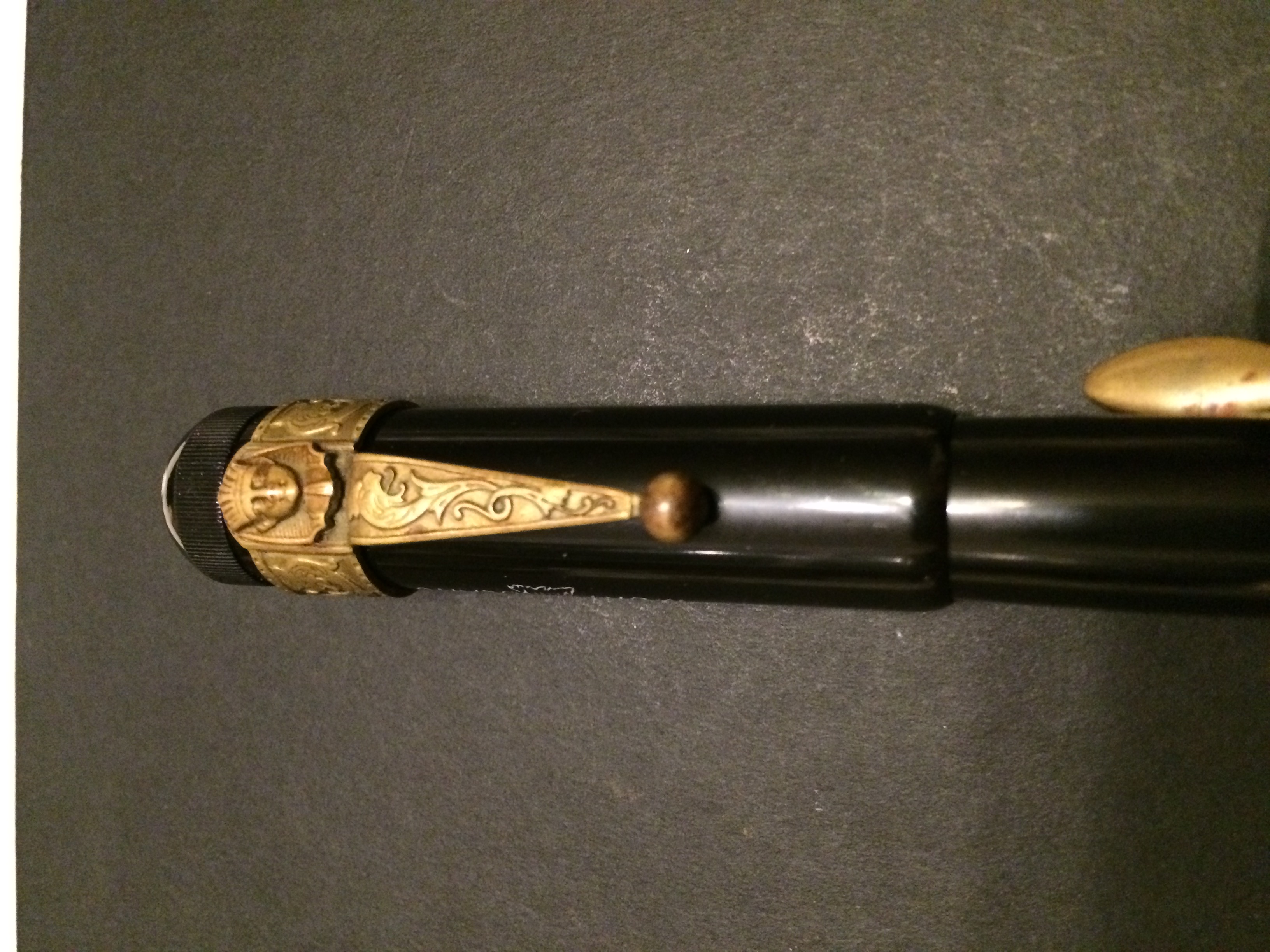 la penna è molto grande rispetto alle altre safety che ho... penna anni 30... corpo in ebanite. la condizione è splendida... di un bel nero lucido e profondo... profuma di ebanite... quando la prendo in mano mi chiedo cosa faceva il tuo padrone 80 anni fa? era tra i bravi o tra i cattivi?