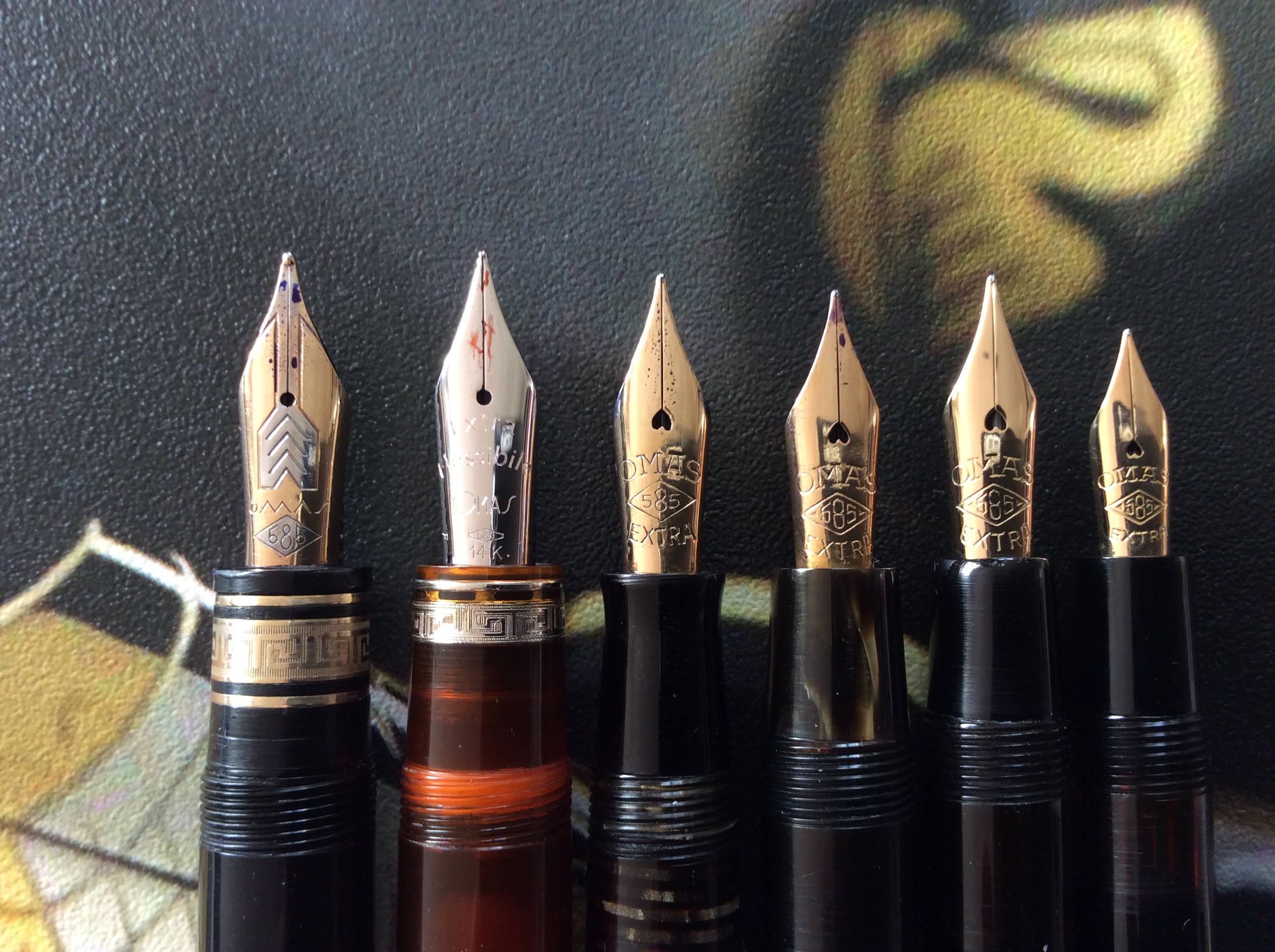 Buongiorno a tutti, ho notato che esistono parecchie varianti di pennini Omas extra, nessuno reca la misura e vanno quindi inesorabilmente provati per capire che tratto rilascino. Tra quelli in mio possesso non ce ne sono due simili, tutti molto flessibili(uno addirittura esagerato...), rilasciano un tratto da molto fine a fine. Mi chiedevo se esistesse un pennino del genere di misura media o addirittura più grande e se ci fosse il modo di riconoscerlo alla sola vista. Presumo che fossero di stampo artigianale e quindi non ci fosse una certa linearità di produzione, giusto?