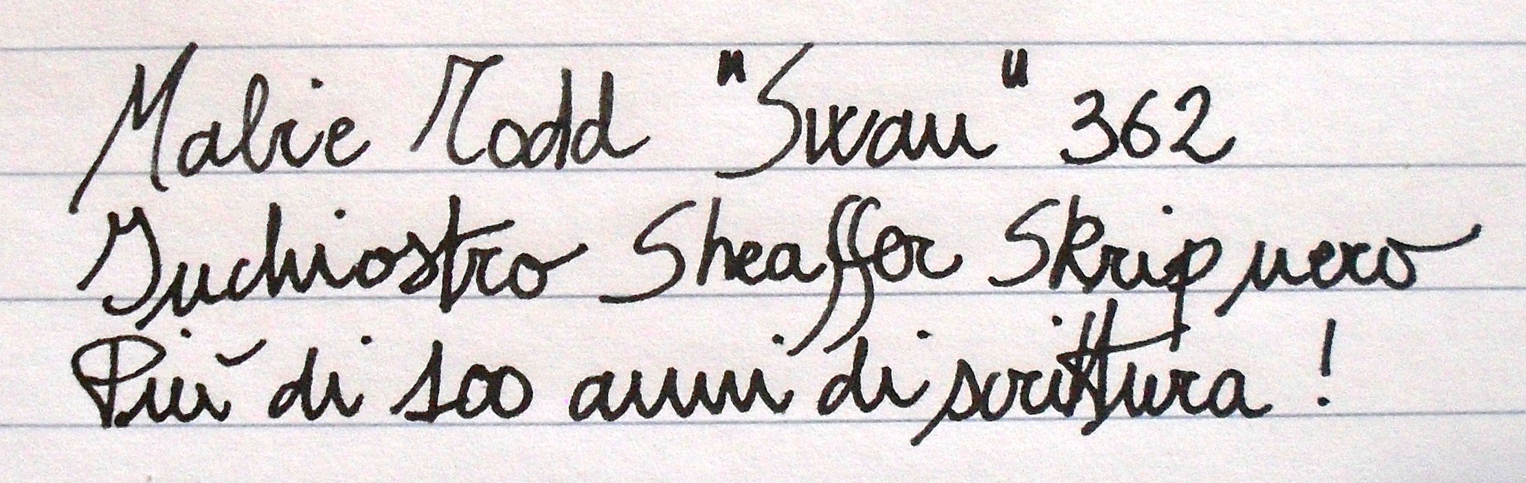 Non è facile, almeno per me, resistere al fascino di una bella stilografica inglese dei primi del ‘900. Per questo motivo, adocchiata questa Mabie Todd “Swan” in ebanite degli anni 1910, non ho potuto fare a meno di acquistarla, attratto anche dall’idea di verificare la praticità nell’uso quotidiano di una “eyedropper”, ossia di una stilografica con riempimento a contagocce.