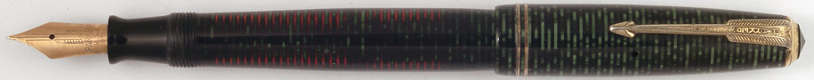 Una bella Parker vacumatic, verde anellata (foto dalla rete); se eviti le versioni "maxima", sicuramente nel budget di cui sopra ci starai comodamente, anzi forse ti resta anche "spazio" per qualcos'altro.