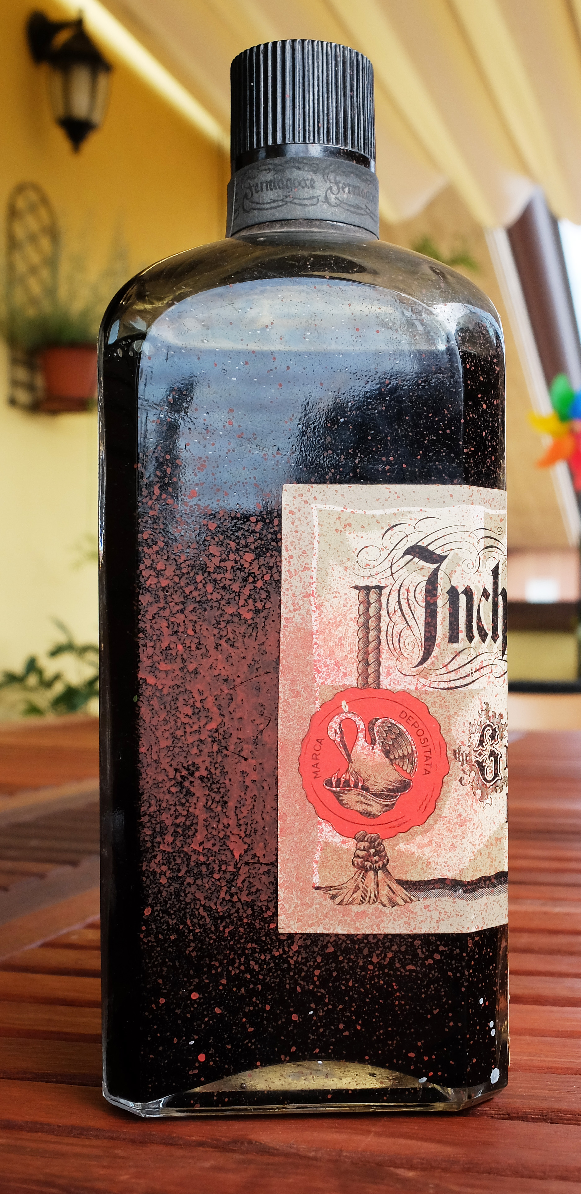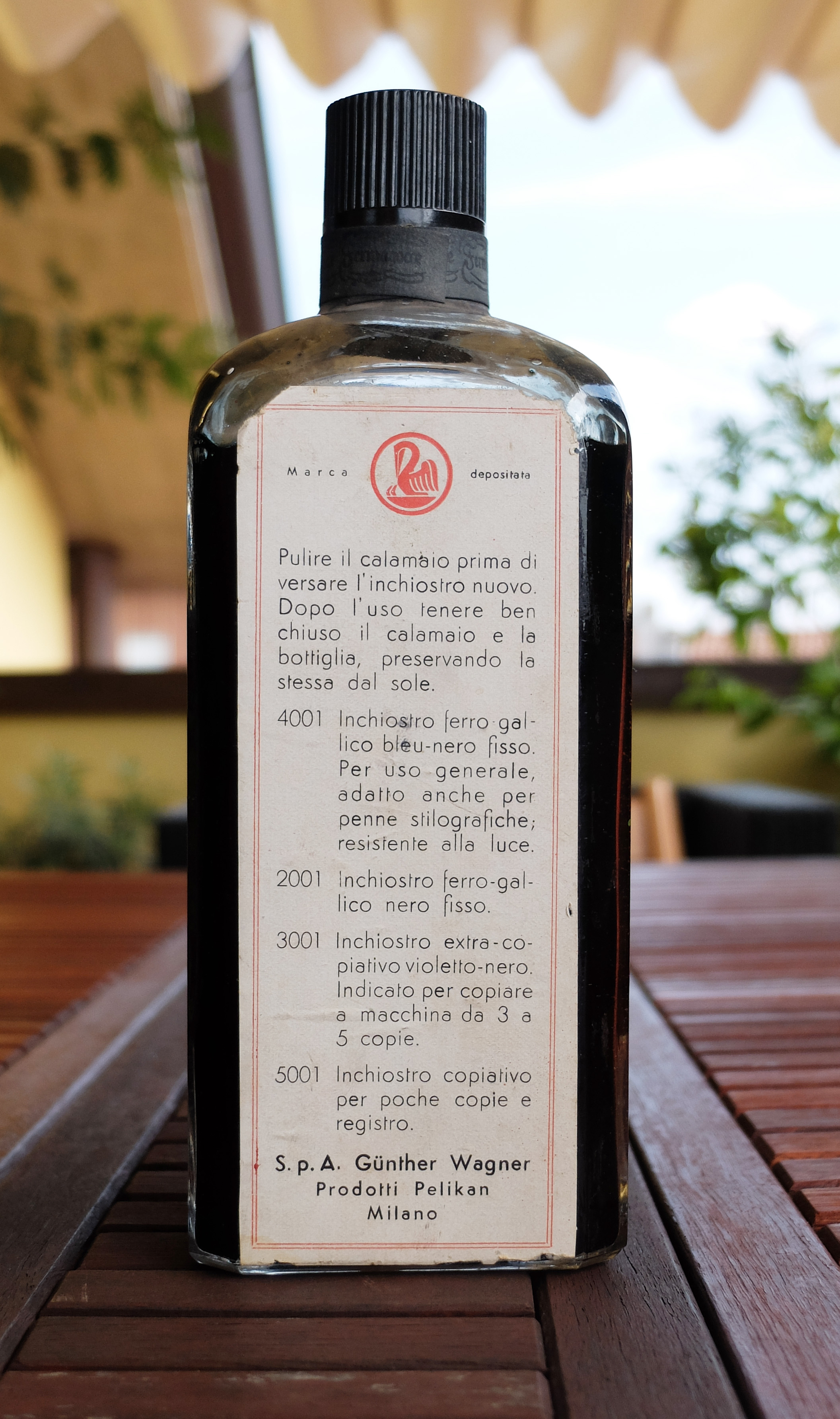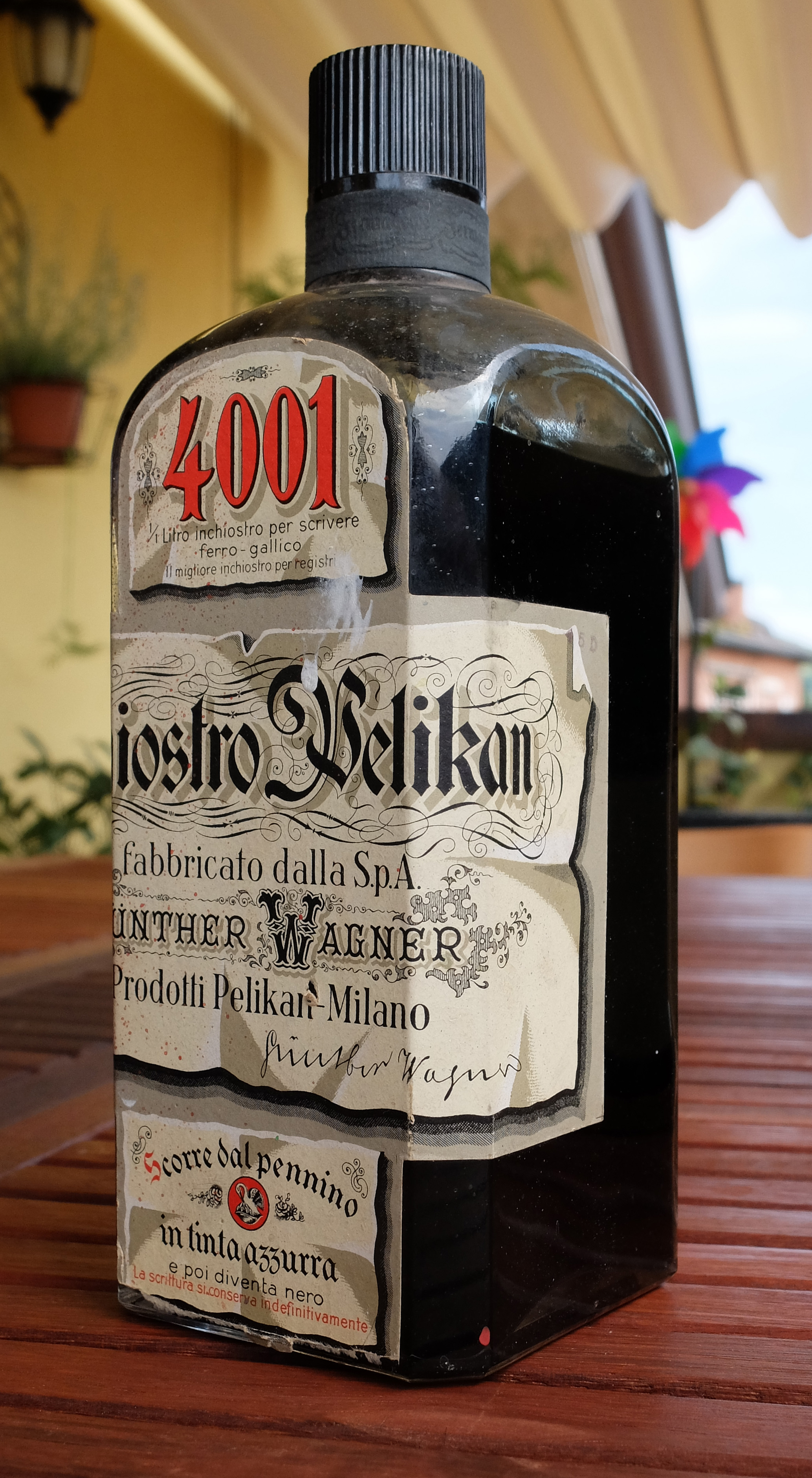 Non ho ancora trovato il tempo, oppure il coraggio, di aprire la bottiglia per testare questo antico inchiostro. Osservando l'etichetta, e grazie alle informazioni trovate sul forum, credo di poter datare la bottiglia nei dintorni degli anni '30. Vi lascio alle immagini della bottiglia ancora chiusa, in attesa ch'io trovi il tempo di aprirla e provare l'inchiostro, ovviamente con un pennino da intinzione.