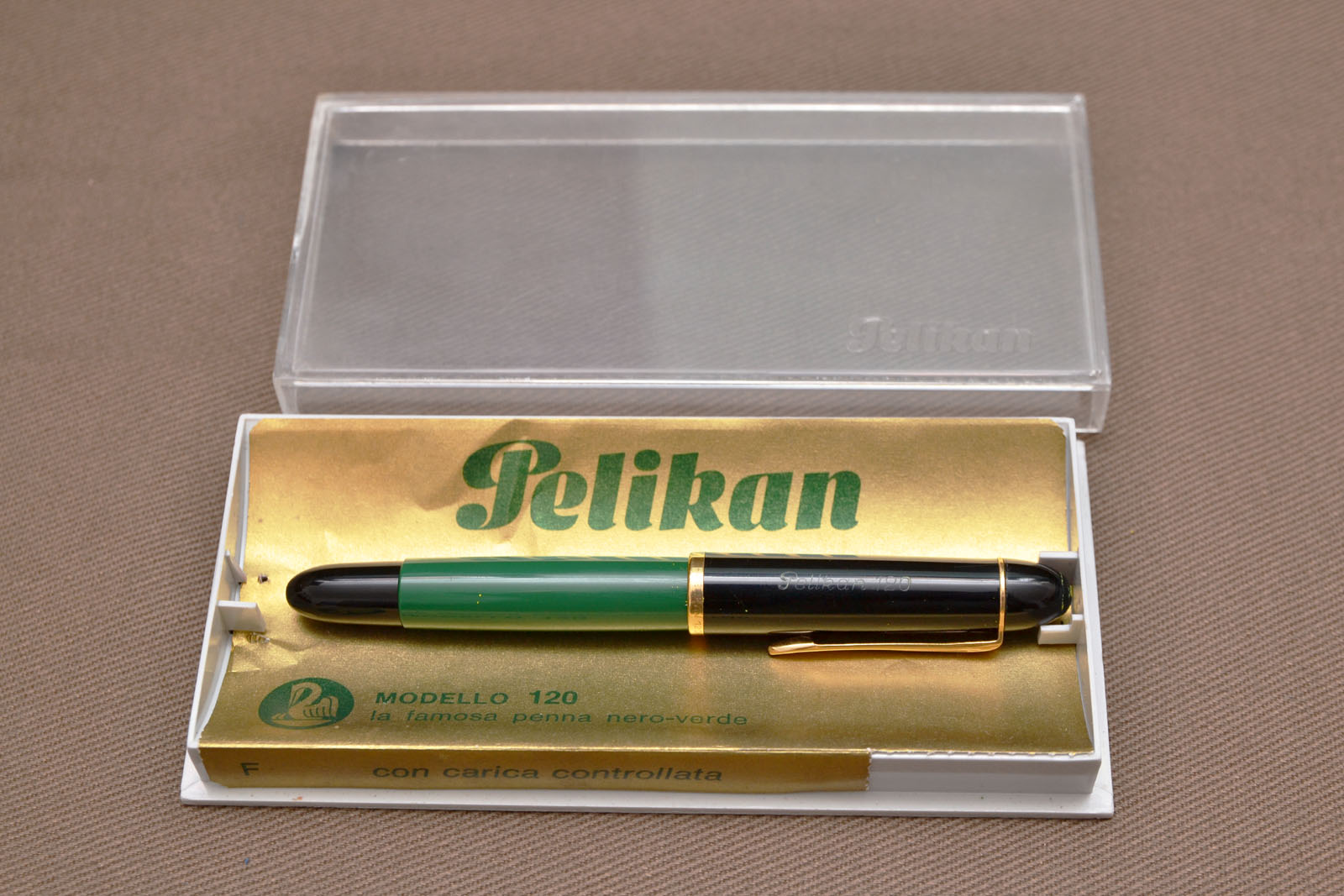 Trattasi di una 120 prodotta su licenza dalla ditta Merz & Krell, anche lei teteska di Cermania. La scritta "Pelikan 120" é incisa sul cappuccio in modo piuttosto profondo. La stessa scritta era comunque presente, a caratteri meno evidenti e più ridotti in dimensione, anche sui modelli 120 prodotti fino al 65 direttamente dalla Pelikan.
