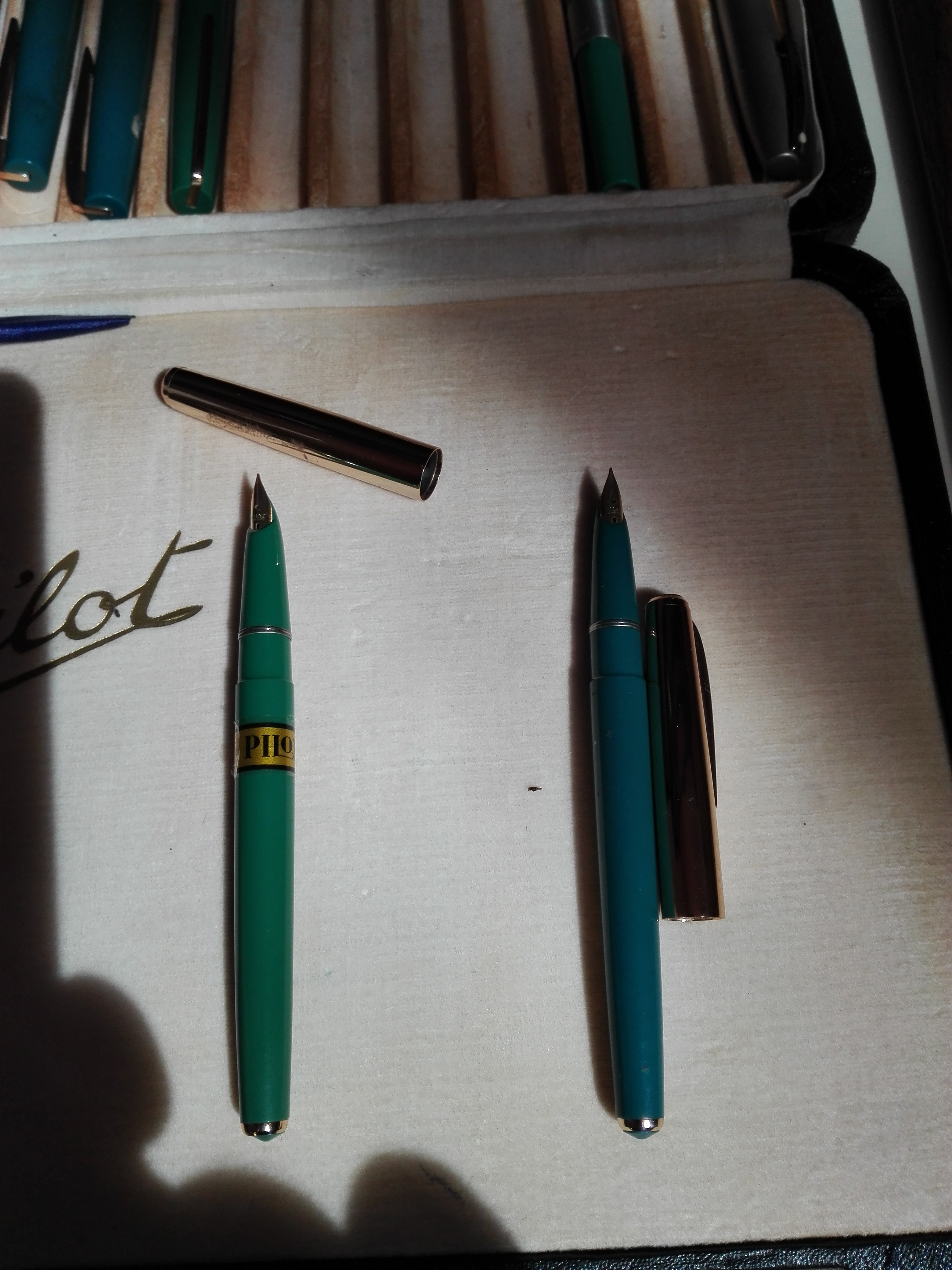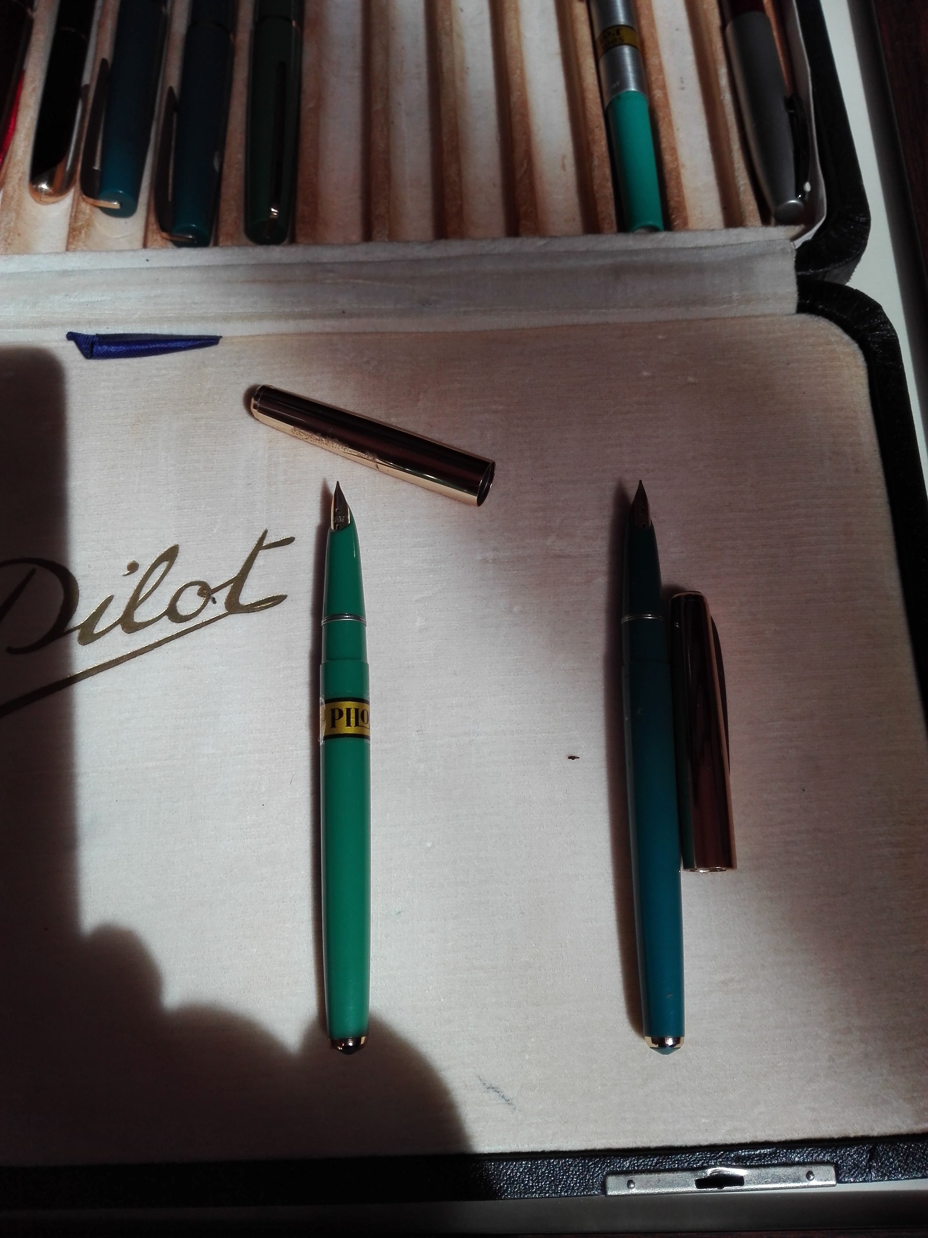 Ho ritrovato colezzione di vecchie Pilot con scatola originale porta penne Pilot , invio alcune foto per identificarle , sè qualcuno è particolarmente afferrato su questo mondo mi scriva , grazie Roberto .