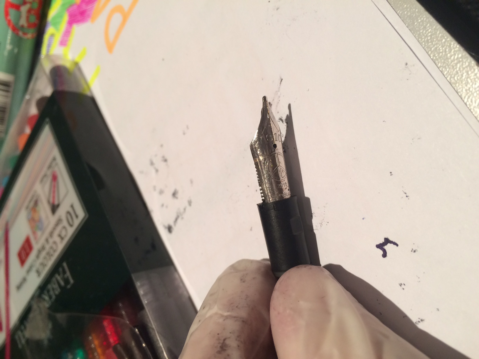 Ho provato ad inserire più a fondo nella sezione il pennino e alimentatore e per farlo mi sono aiutato con una pinzetta.. questo non solo non ha risolto il problema del pennino flottante ma lo ha anche curvato un po' a ulteriore scapito della scrittura...