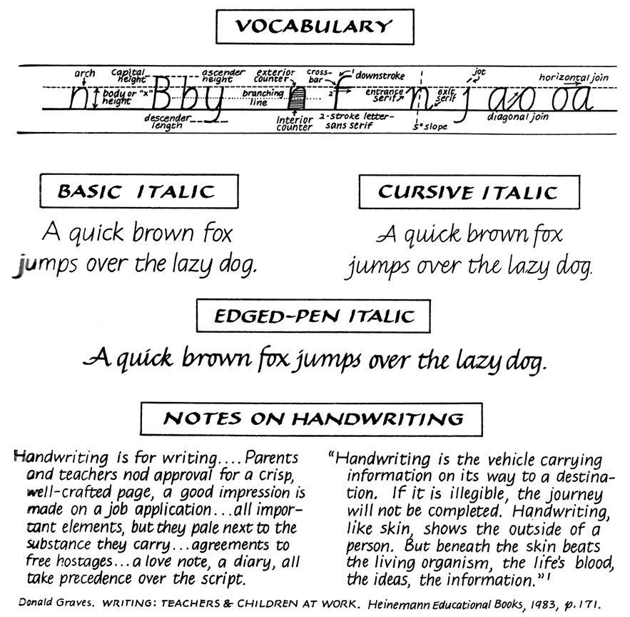 Tutto il libro peraltro è scritto nello stesso stile, facilitando così l'apprendimento. Viene proposta dapprima la forma base, senza legature, molto adatta al tuo scopo. Poi la forma corsiva, con legature e più adatta ad un utilizzo informale.