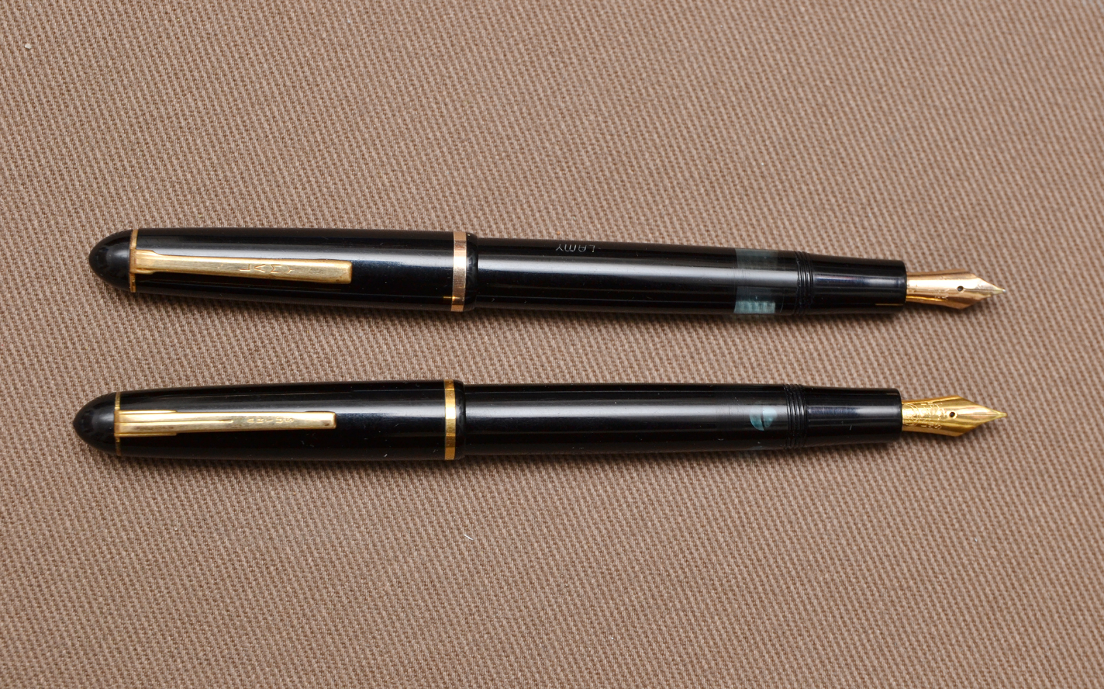 Stesso modello, tranne che per piccolissimi particolari, fermaglio, veretta, finestra visualizzazione inchiostro e pennino (Lamy in oro, Artus Placcato)