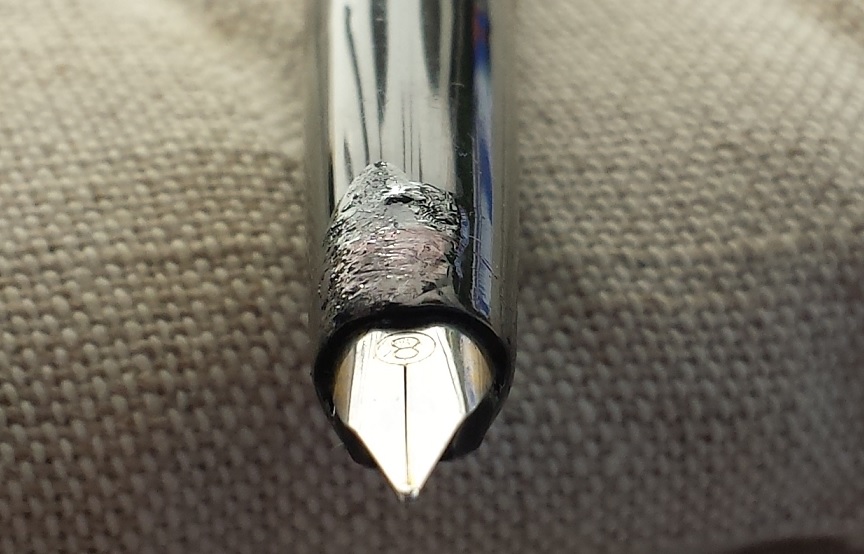 Proprio così: all'inchiostro è impossibile giungere in punta. Se il pennino è un unico pezzo con l'alimentatore, è difficile anche da raddrizzare