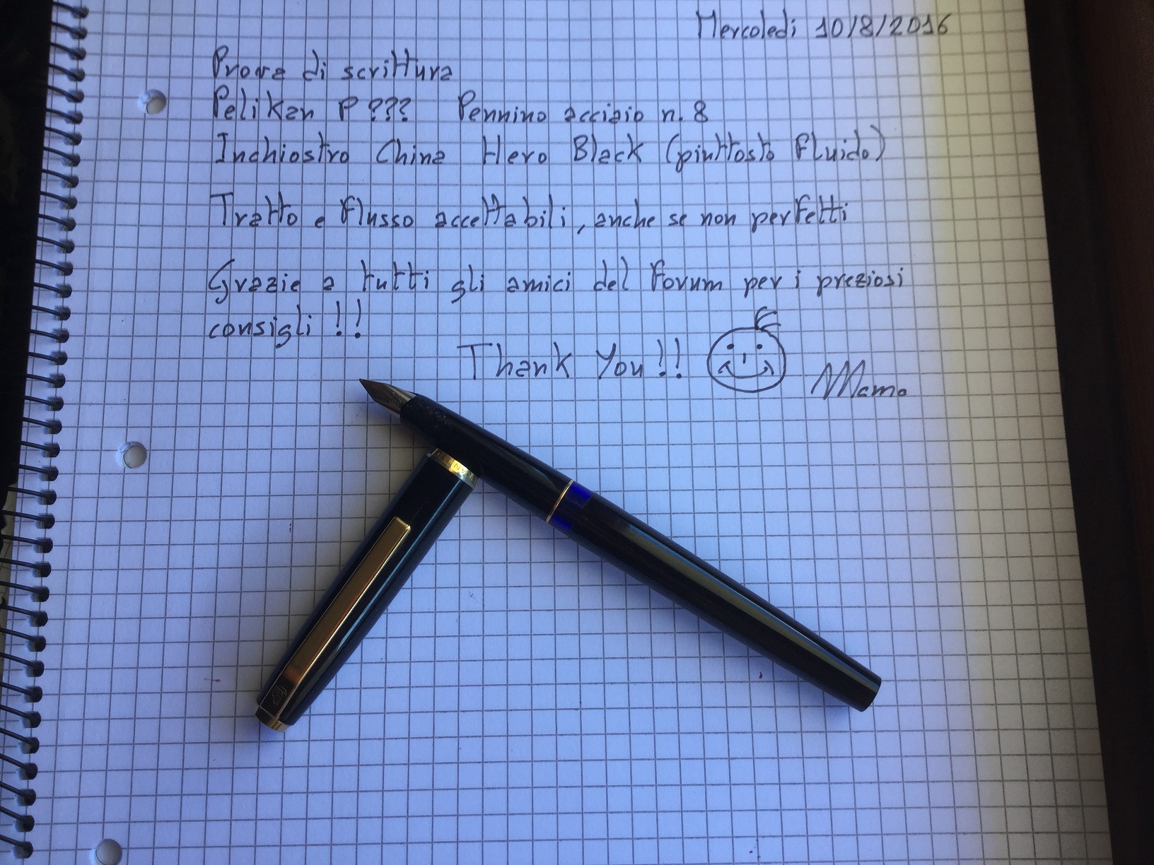 Inoltre sospetto che il pennino, che credo fosse gold plated visto che presenta qualche lontana traccia di doratura nella parte inferiore, non sia un Pelikan. L'unica scritta presente é un "8" cerchiato, e non ho mai visto un pennino Pelikan senza il logo o la scritta della marca.