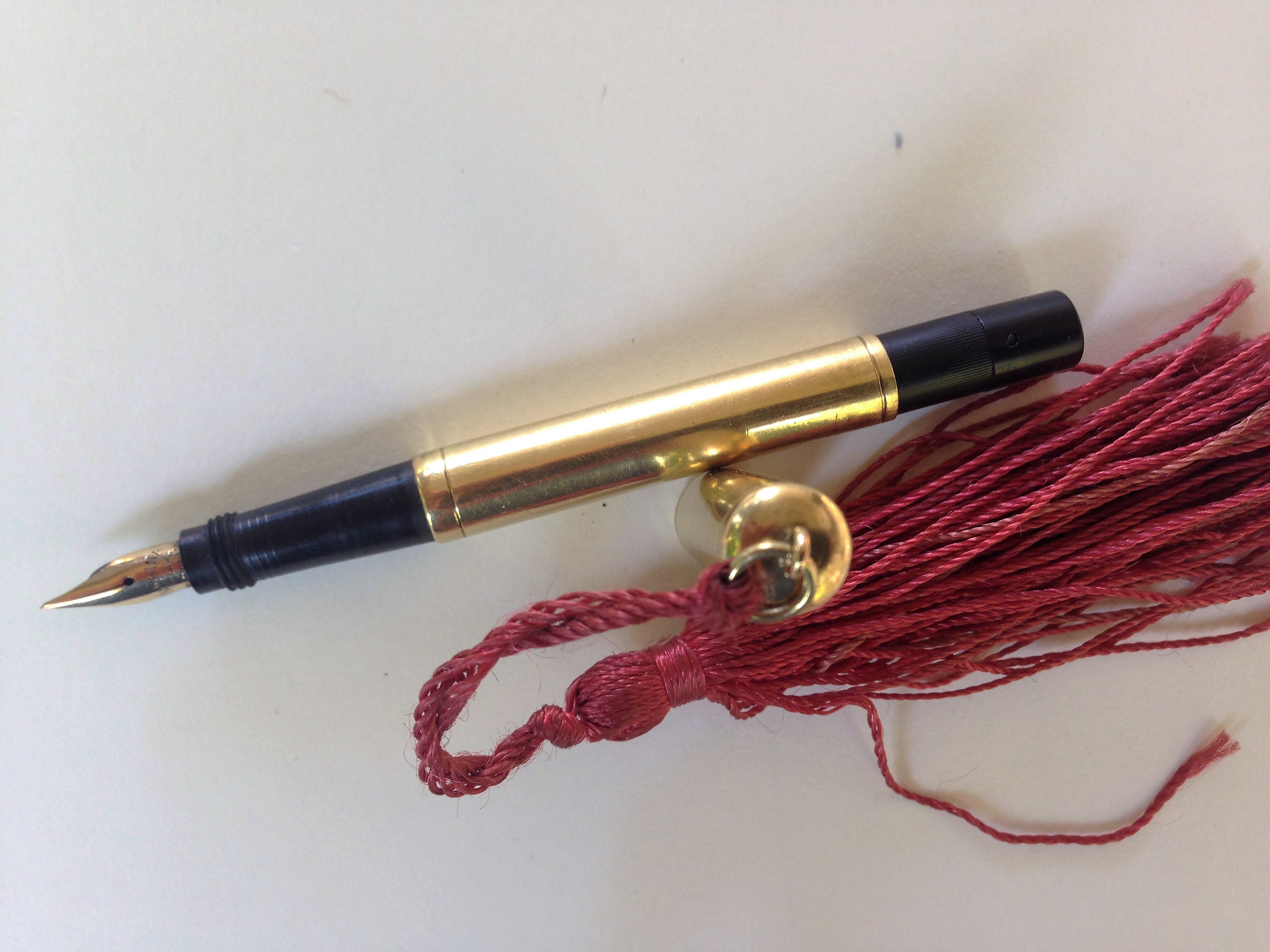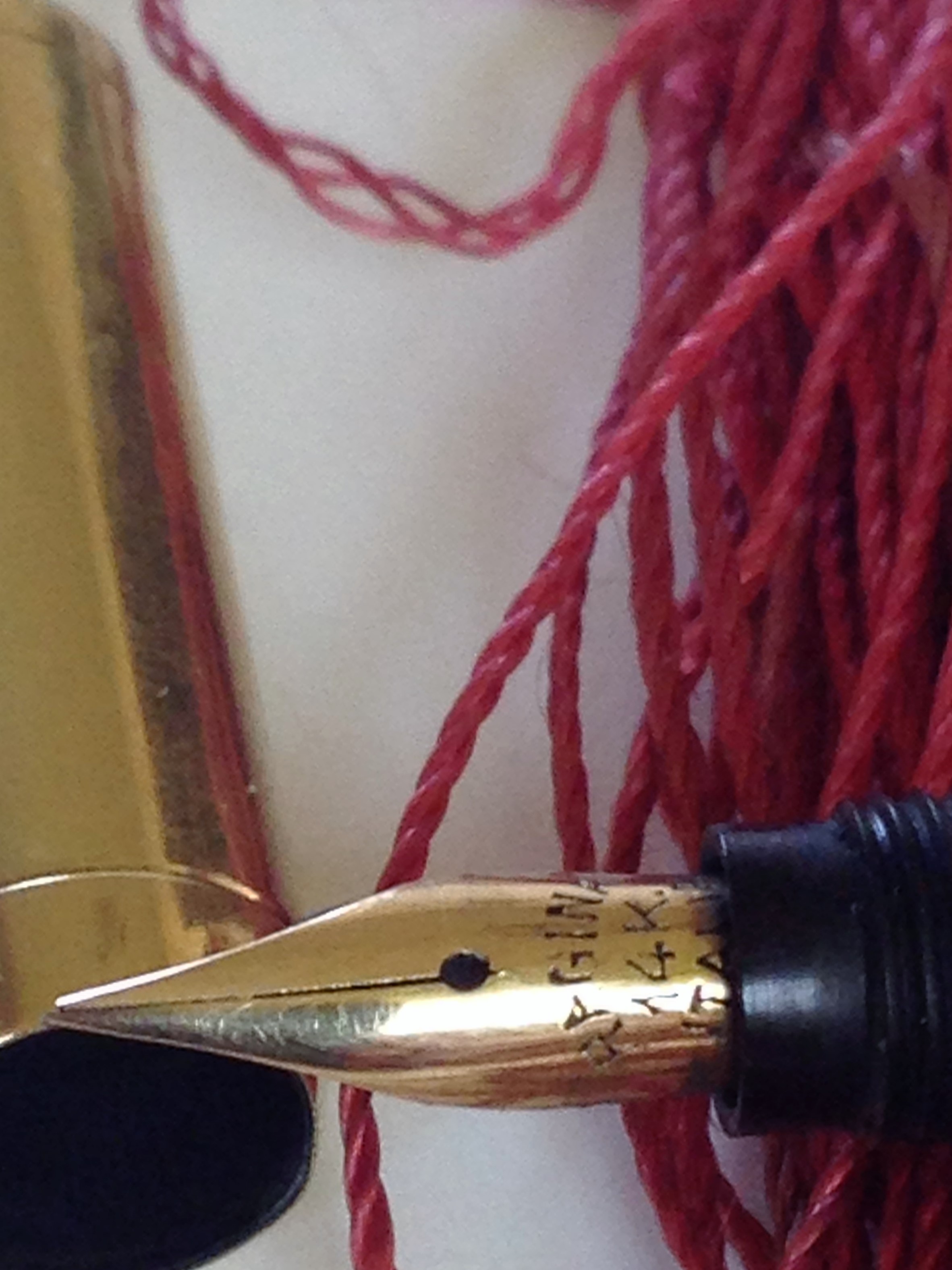 Il pennino della tua rientrante deve essere antecedente al 1934-5 (non riportando la caratura in millesimi dell’oro che era divenuta obbligatoria successivamente). Ma è comunque inusuale marchiare il pennino e non il fusto o il cappuccio o la clip: molto più frequente, solo per alcune produzioni minori, tuttavia, il contrario, ricorrendo in questi casi al pennino “