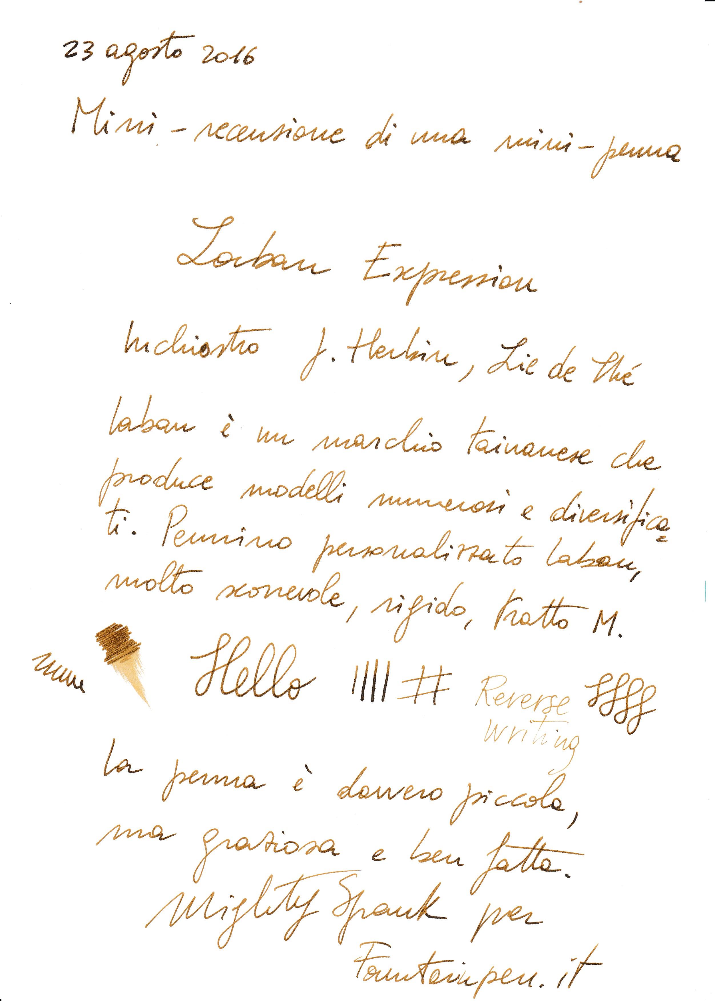 Scrive molto bene, in maniera scorrevole, senza incertezze e salti di tratto. Il pennino è un medio piuttosto rigido, comunque assolutamente funzionale e gradevole nell'uso.