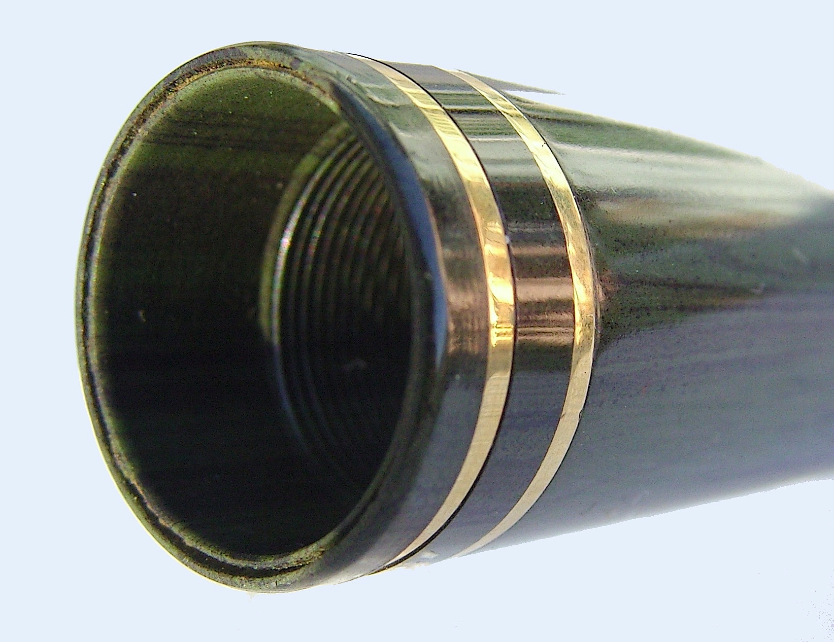 Se non è una serie speciale, la tua penna dovrebbe esser di quelle costruite in quella che la Omas chiamava "resina vegetale": un materiale che si è rivelato avere più difetti che pregi, l'unico dei quali mi pare possa essere riconosciuto nella buona resistenza agli urti: senz'altro superiore al materiale vetroso e fragilissimo delle Montblanc. Che per contro sono assai più lucenti e stabili. Perché purtroppo uno dei maggiori difetti del materiale usato da Omas è la scarsa stabilità dimensionale, quasi sicuramente responsabile dell'allentamento dell'anello della tua Paragon. Spesso la cosa è accompagnata da un sensibile peggioramento nell'accoppiamento tra corpo e cappuccio, che tendono ad incastrarsi l'uno nell'altro prima di arrivare al finecorsa.