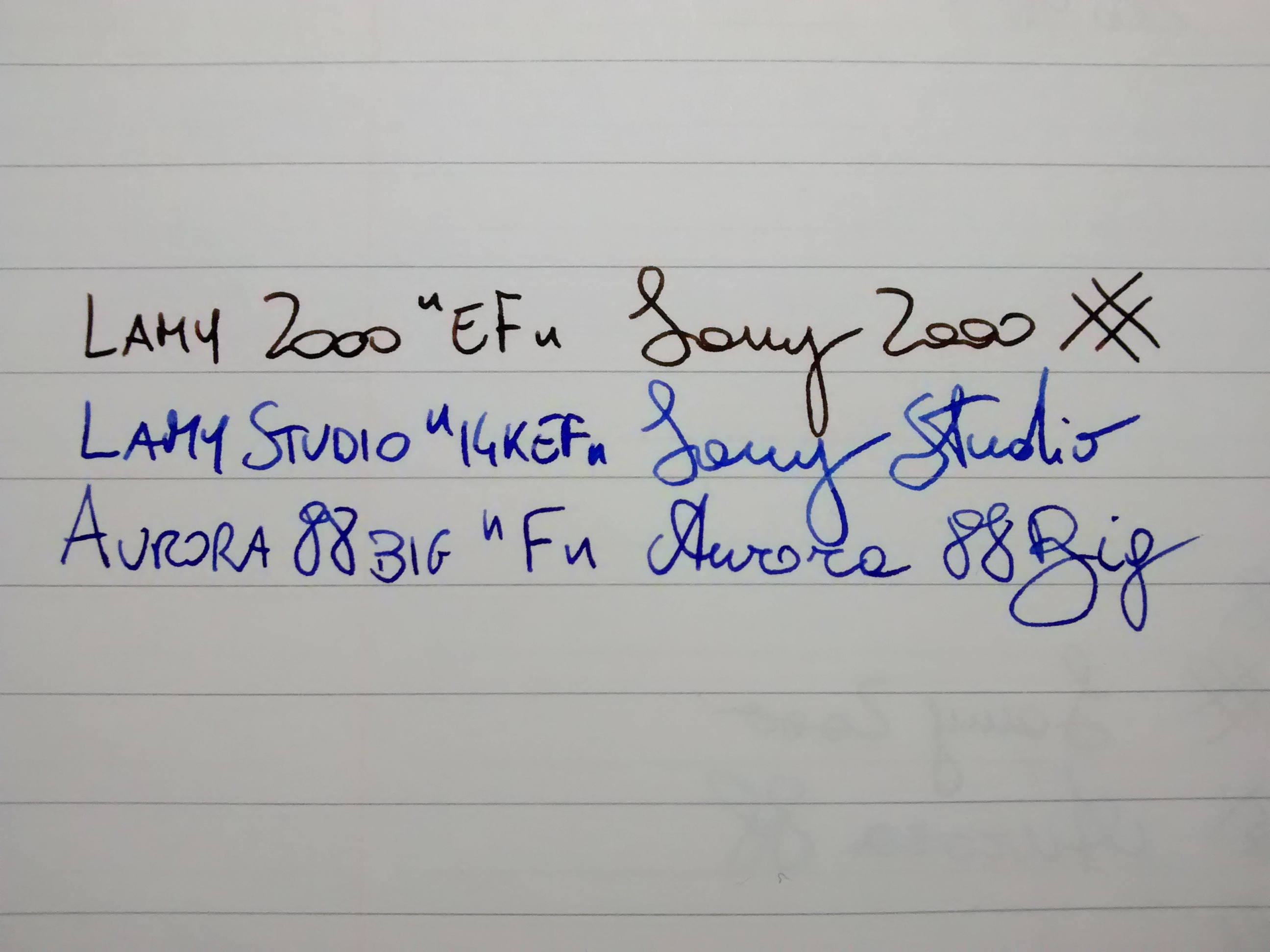 Purtroppo per te ho il pennino M (per me andrebbe bene anche il B) comunque l'M della 2000 più o meno equivale a un Bebrownolf ha scritto:Questa è un'ottima informazione... Che mi conferma l'ottimo servizio clienti di Lamy per risolvere i problemi sui propri prodotti, specie per quelli di un certo prezzo. Al massimo posso fare proprio così, scelgo una grandezza e poi mi regolo.vito72 ha scritto:Se gradisci l'EF prendilo e al massimo te lo fai sostituire da loro. Io ho inviato la mia famosa 2000 in lamy, e me l'hanno restituita in breve tempo sistemandola, quindi in base alla mia esperienza io mi fiderei di loro. La lamy 2000 è cosi particolare che io vorrei averne una di tutte le misure.