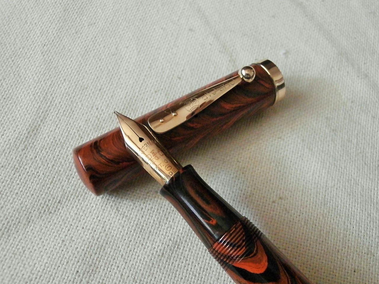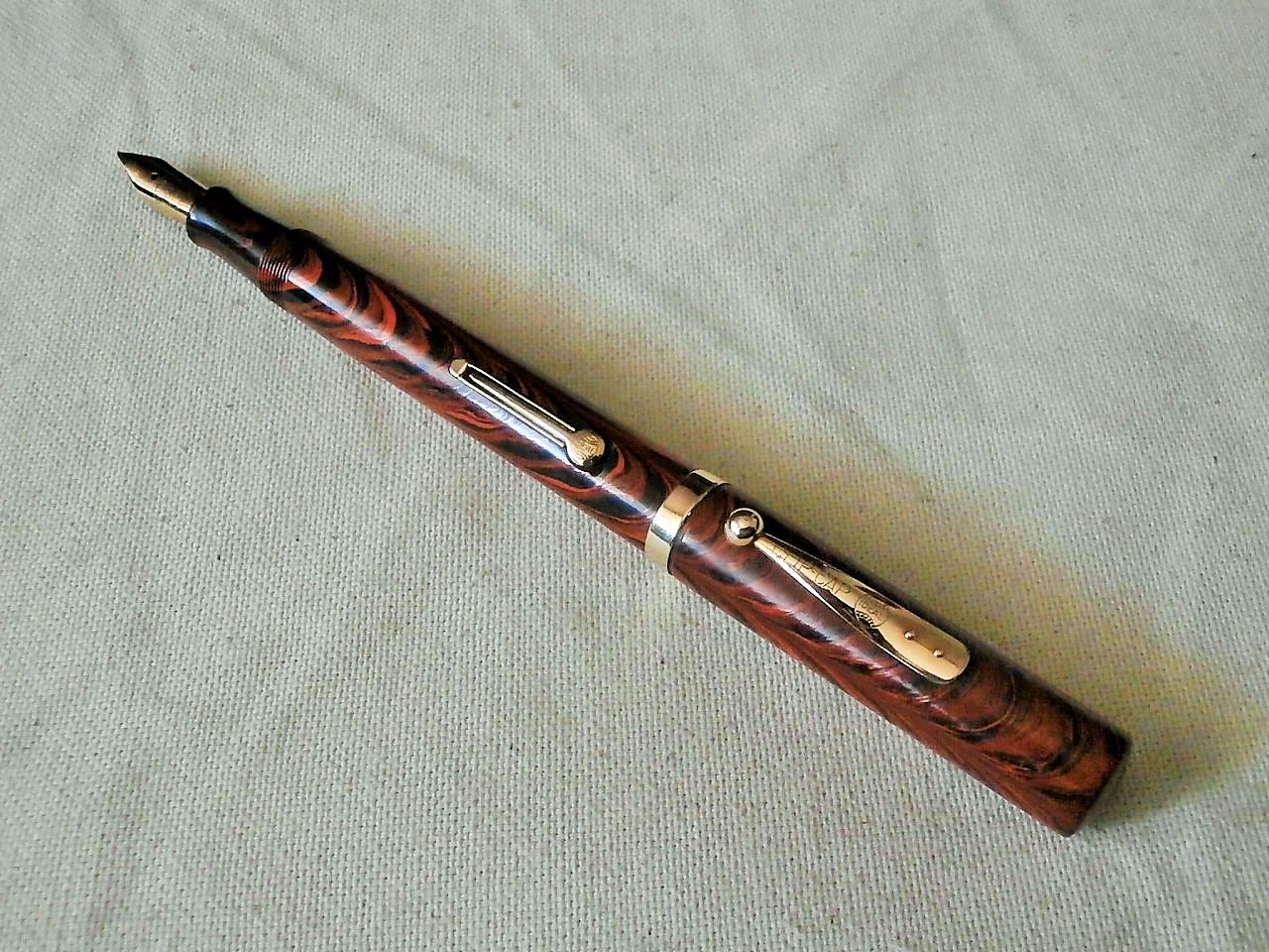 il pennino originale nr.6 fine misura 2,5 cm solo di parte esterna.......clip e finiture ancora in ottimo stato, cosa che non si può dire della scritta che è ormai solo parzialmente leggibile.