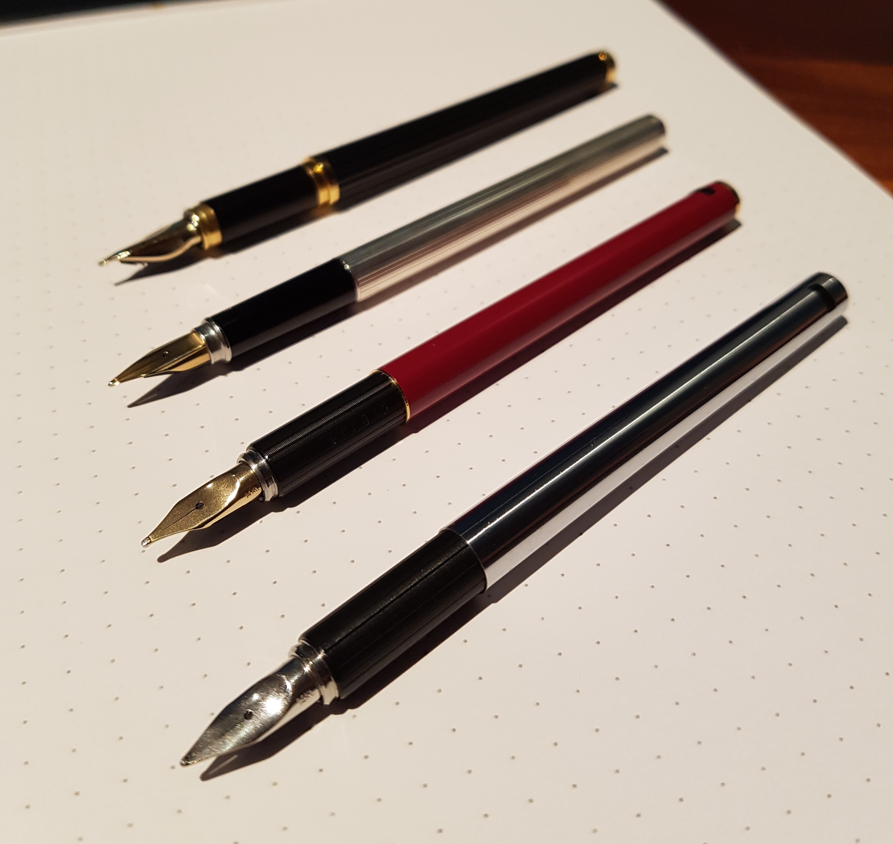 Qui le quattro penne a confronto con un'altra sottile, la Muji
