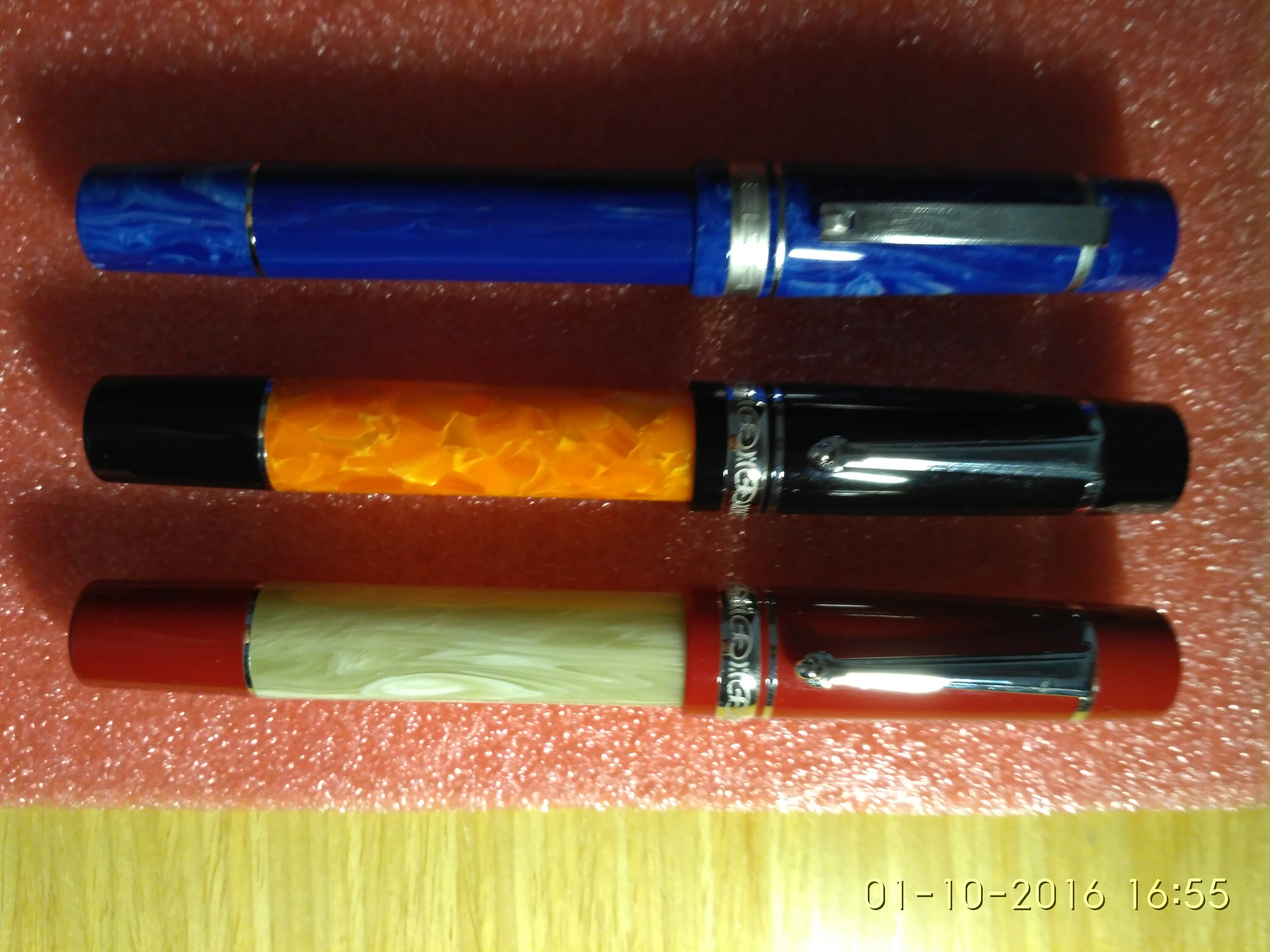 Recentemente ho preso alcune penne tra cui tre Delta, all'inizio avevano problemi con il converter, ma ho risolto conuna piccola sfera al suo interno, in seguito mi sono accordo che i pennini scrivo tutti e tre con modalità diverse...sono tutti M e in acciaio, ho sotituito il pennino con un jinhao della stessa misura in una delle tre (cambiando anche il feed..) stranamente ci calza perfettamente, il risultato mi ha lasciato perplesso: