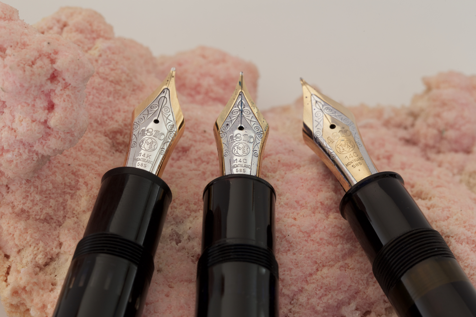 Che belle penne! Alcuni, non sapendo, potrebbero obiettare che tre penne uguali non hanno ragione d'essere. Ma per chi le ha scelte con cura, non ci sono tre 149 uguali. Ognuna ha una sua lucentezza, un suo colore di pennino, un suo peso, una sua scrittura e anima.
