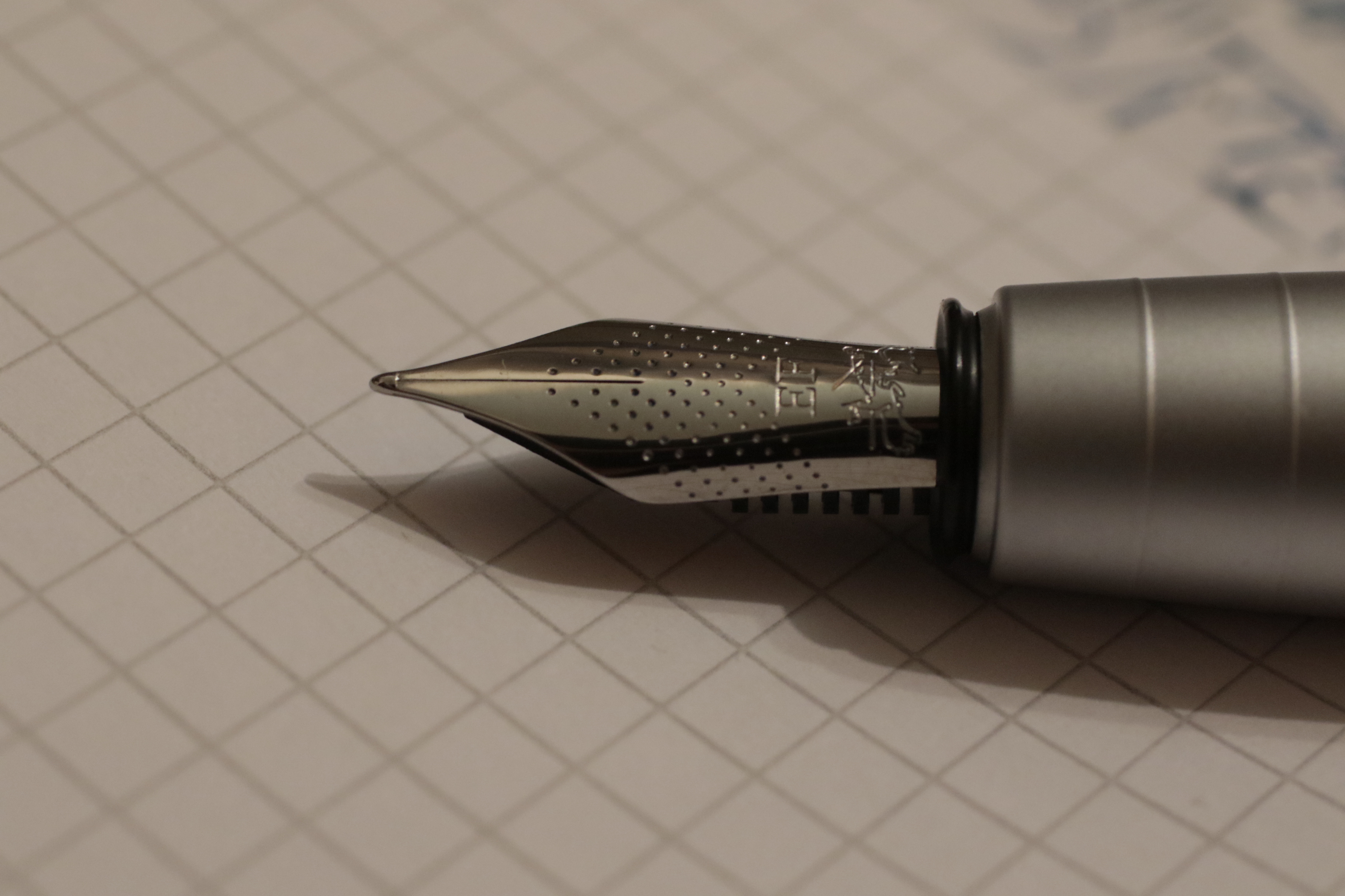 Pennino: Stainless Steel. Non durissimo perchè permette una lieve variazione di tratto, molto scorrevole! La dimensione non la conosco ma non è molto grande. La lavorazione è interessante con logo FC e piccoli buchini decorativi. Mai false partenze. Davvero affidabili! Riguardo al pennino EF io sono molto soddisfatto e ve lo consiglio vivamente, non mi ha mai dato problemi!