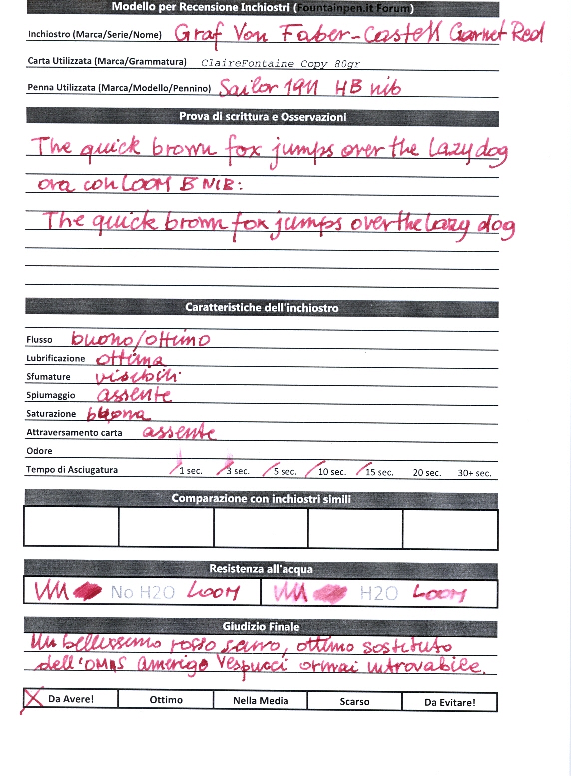 Confermo, è un rosso bellissimo, carico, con un buon shading. Tende a scurirsi leggermente asciugandosi arrivando, a parer mio, ad un rosso perfetto per i miei gusti, non troppo acceso ma nemmeno spento.
