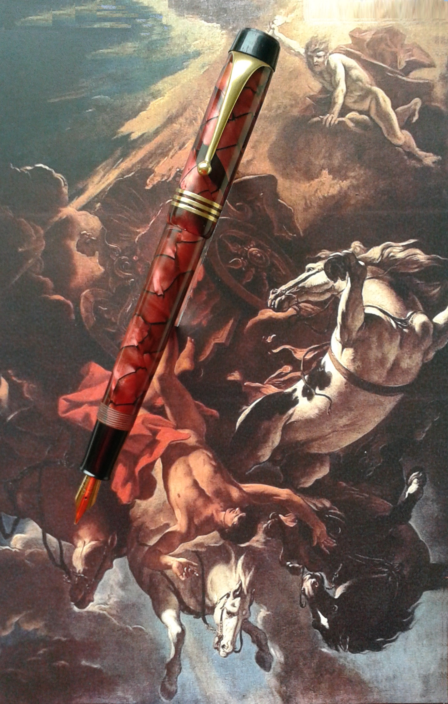 Nell’immagine seguente, ecco quello che sicuramente accadrebbe a chi volesse ardire di “provare” la mia stilografica Helios: come accadde al povero Fetonte (che stoltamente aveva pensato di poter condurre il carro di suo padre il Sole-Helios-Apollo-Febo), il sommo Giove lo fulminerebbe all’istante…