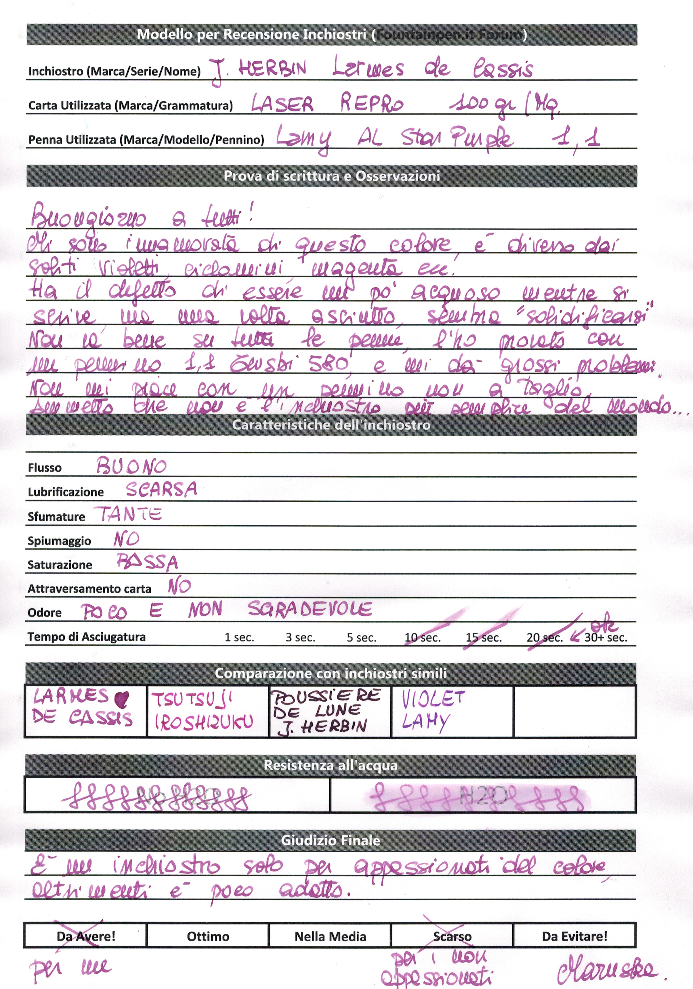 Nel caso dell’inchiostro brillantemente presentato da Maruska, “Larmes de cassis”, letteralmente “Lacrime di ribes nero”,