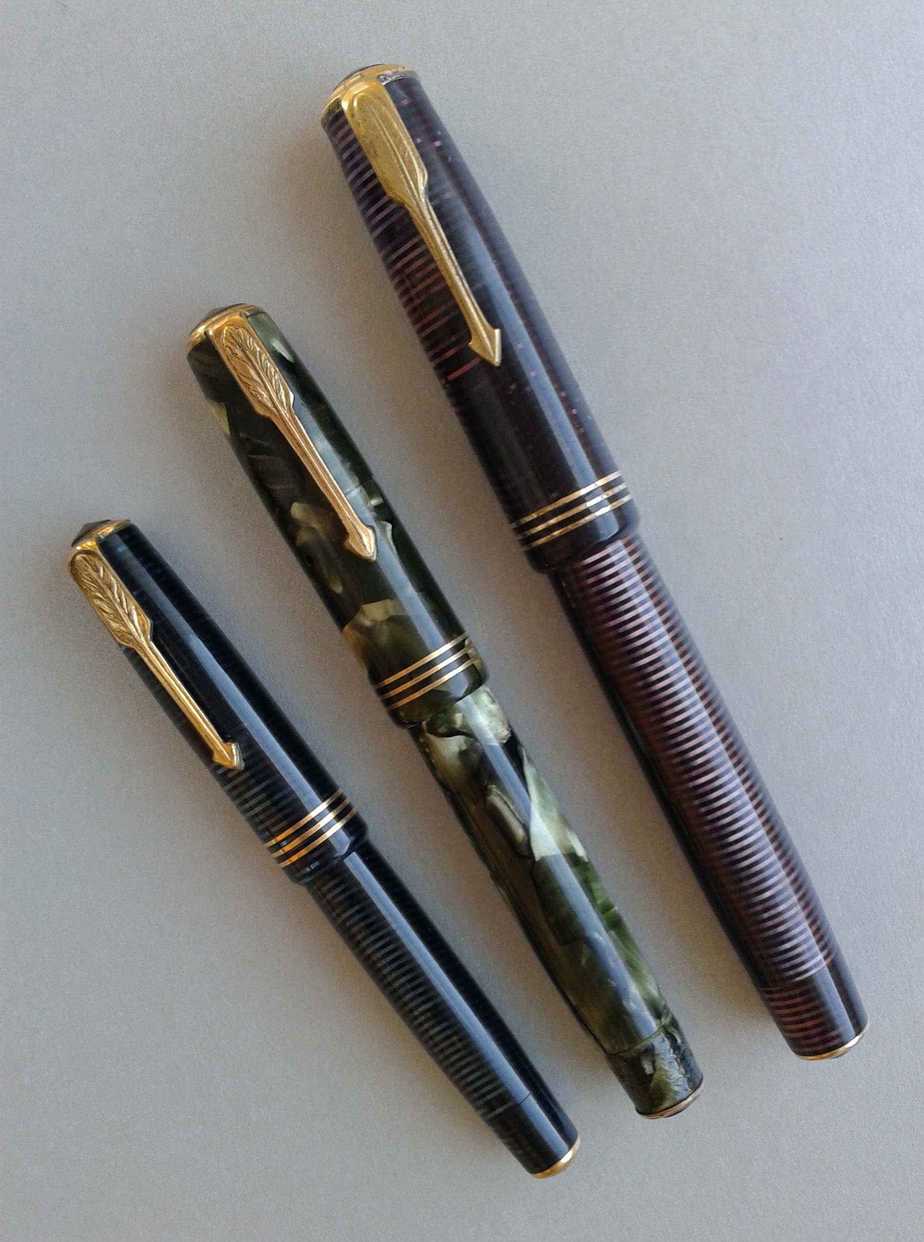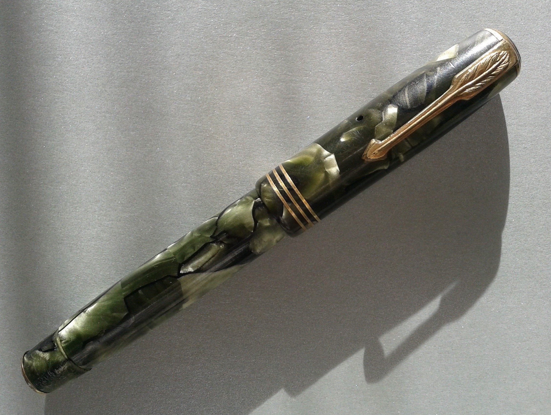 Questo modello liscio (ancora senza nome a differenza del modello faccettato che fu chiamato Imperial nel 1936) è un chiarissimo omaggio alla “Vacumatic” che Parker immise sul mercato nel 1933: omaggio solo formale, tuttavia, poiché la celluloide (sempre di primissima qualità) non è trasparente ed il caricamento è un semplice (ma sempre affidabile) pulsante di fondo.