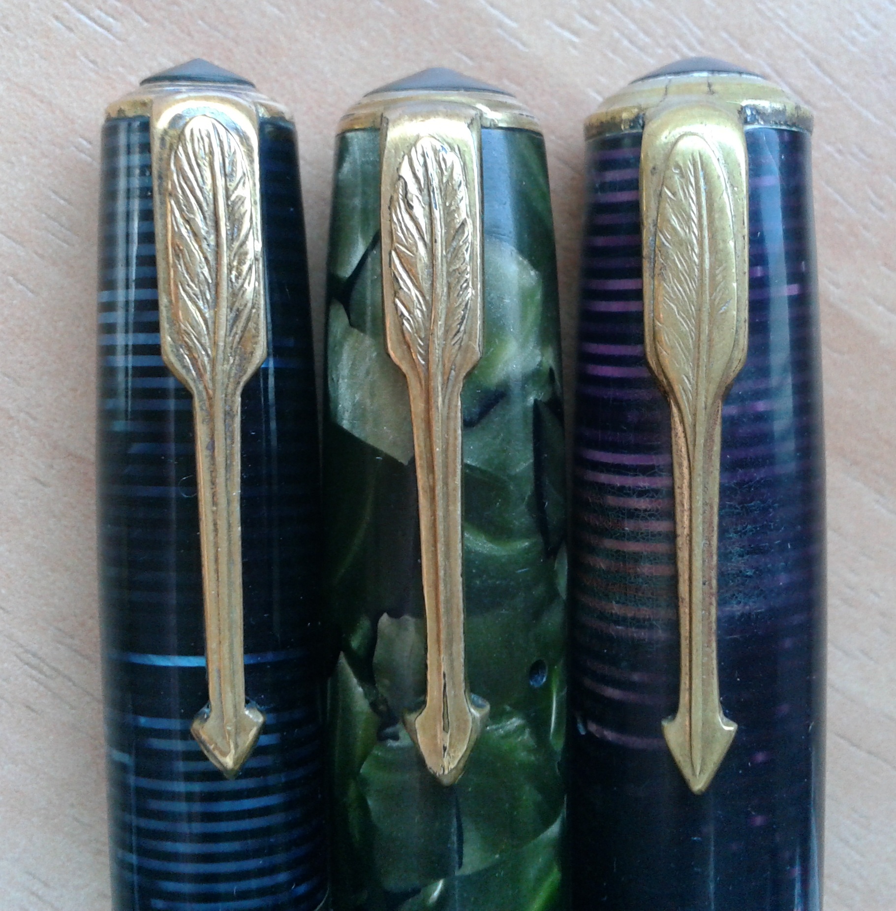 ...è a mio avviso, come ho già scritto, straordinaria per essere l'unico fermaglio che ingloba in sè una vera penna d'oca (quill), per quanto stilizzata. Non solo di una freccia quindi si tratta (come per la rivoluzionaria clip introdotta da Parker), bensì di un vero e proprio strumento di scrittura all'interno della sagoma di una freccia, come conferma la pubblicità Williamson (dal 1939):