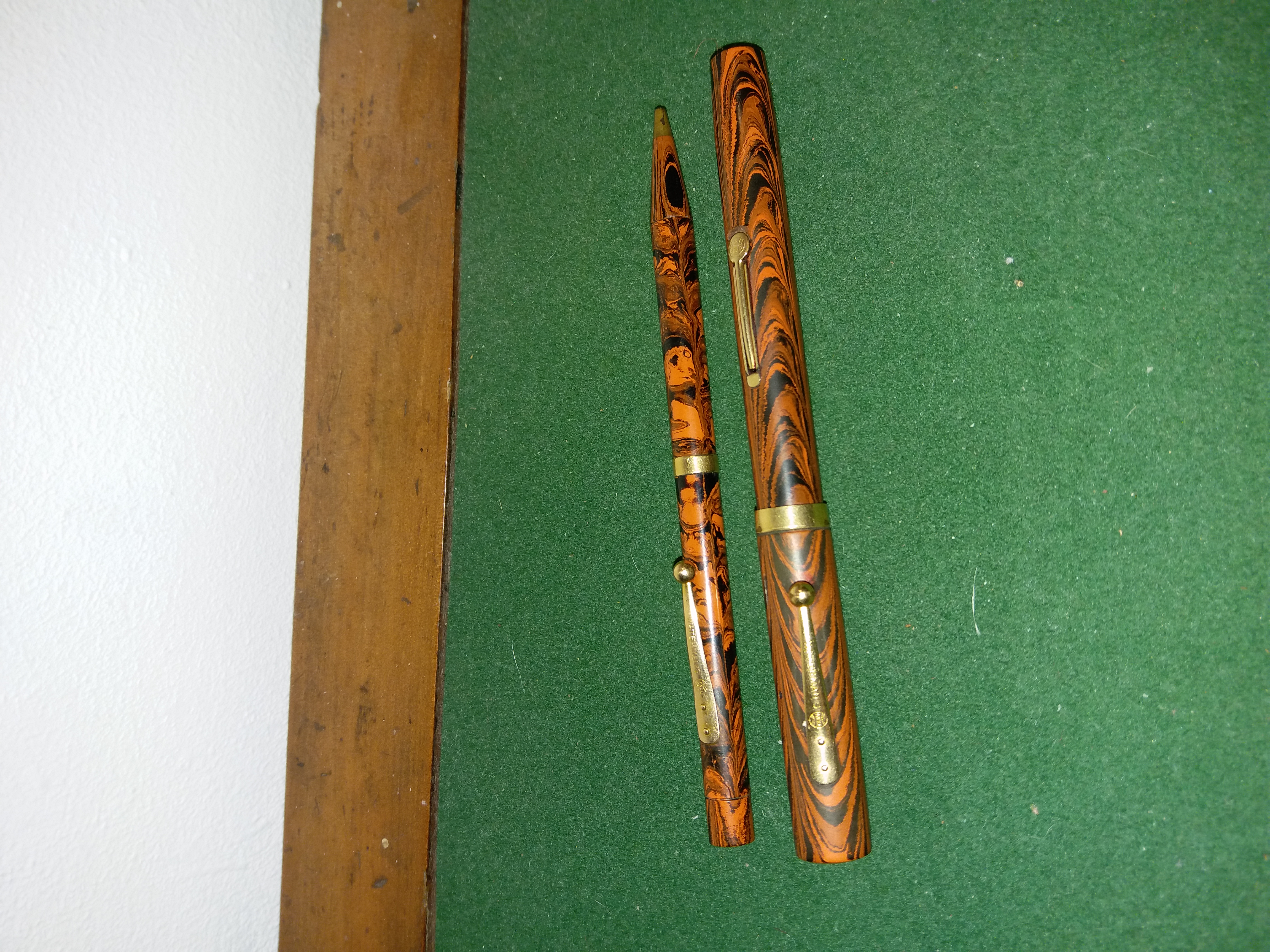 Insomma, entro e chiedo alla signora se può farmi vedere delle stilografiche. Mi conduce davanti ad una vetrinetta dove vedo molte porcherie e questo Le chiedo il prezzo e lei mi risponde: "chiedo a mio marito, che se ne intende!". Prende il telefono e dice (la parure era custodita in un astuccio Paper Mate): "penna e portamine Pappermate (sic!) in radica rossa", poi si gira verso di me e mi dice: "30 euro", e aggiunge con accondiscendenza: "ma le posso fare 25!". Io quasi mi metto a ridere. Mi ripiglio, pago ed esco quasi scappando. Forse mi sento un po' in colpa...