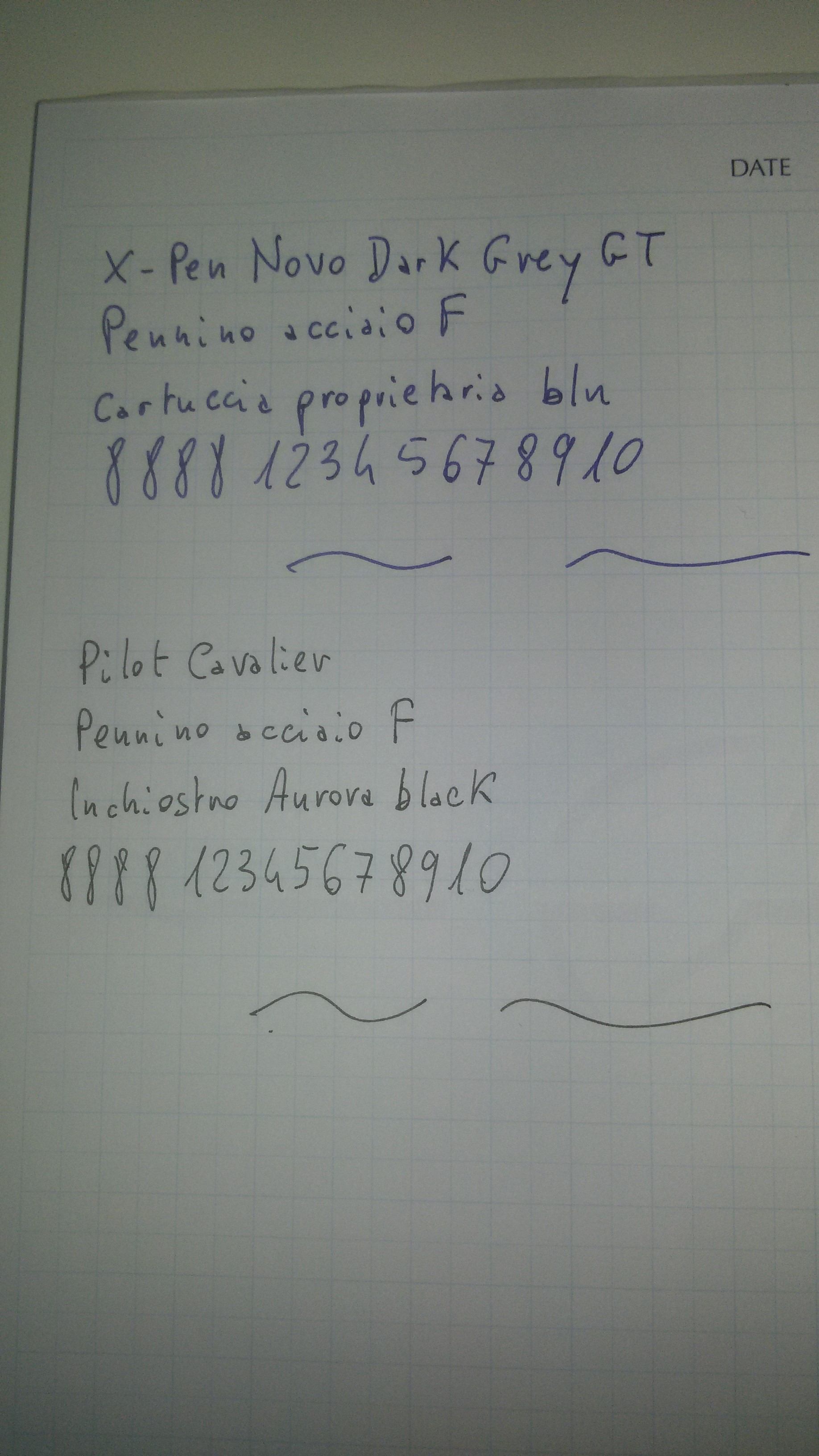 Come prevedibile, di F ha solo il nome, in realtà secondo i miei gusti si tratta di un M abbondante. In ogni caso il tratto non è larghissimo, il flusso risulta copioso , la scorrevolezza del pennino molto buona. Ho utilizzato la penna per alcune ore, durante le quali non ho riscontrato né incertezze né false partenze. Certo, bisogna vedere come si comporta poi nel tempo.